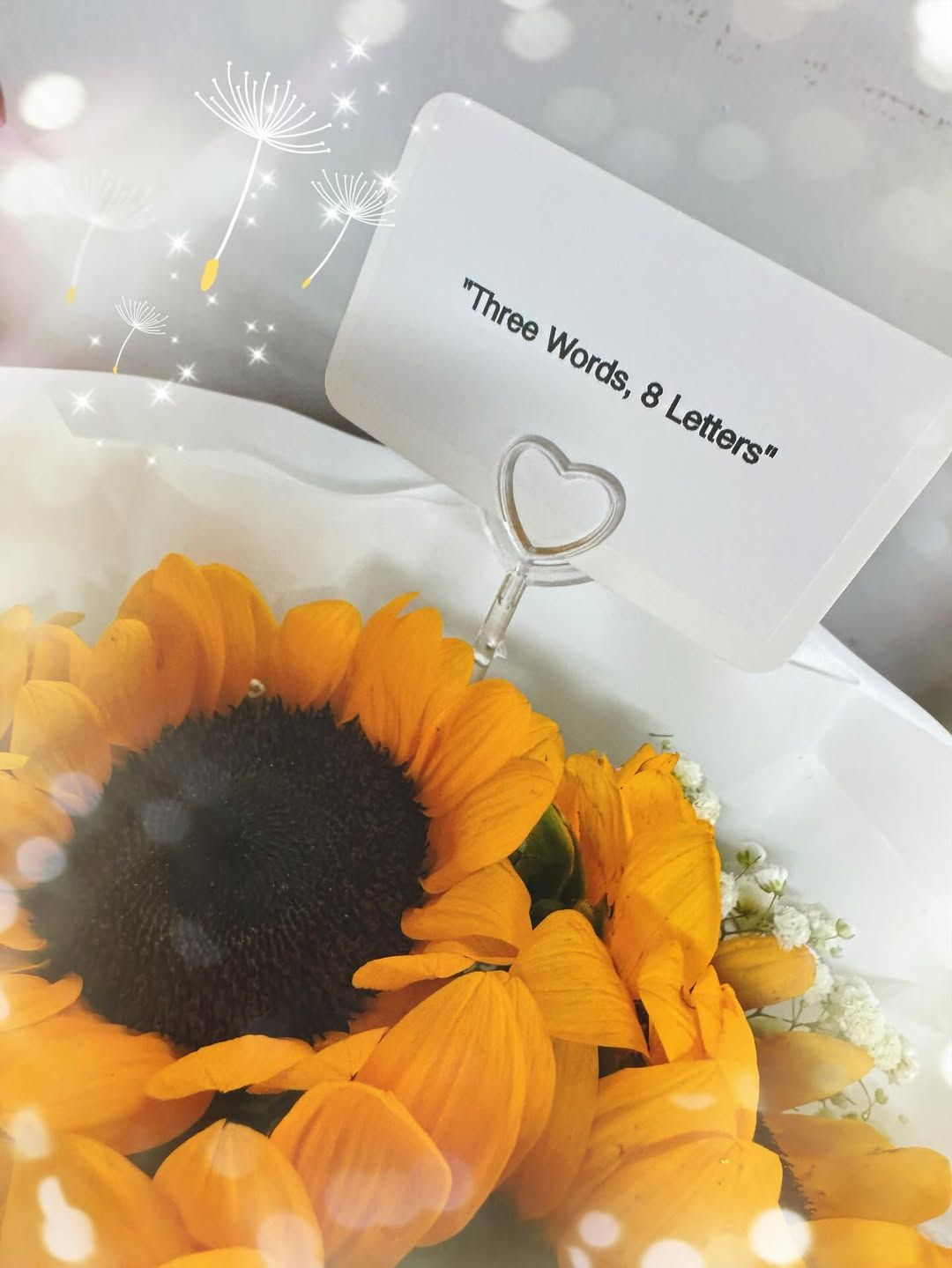 แต่เมื่อเลื่อนภาพดูไปเรื่อยๆ ก็เจอภาพการ์ดที่แม้จะไม่ระบุชื่อคนส่ง แต่บอกเลยว่าข้อความเด็ดมาก โดยบอกว่า "Three Words 8 Letters" เอ๊ะ! ว่าแต่ 3 คำ 8 ตัวอักษร จะหมายถึงคำว่า “I love you” หรือ “I miss you” หรือเปล่านะ