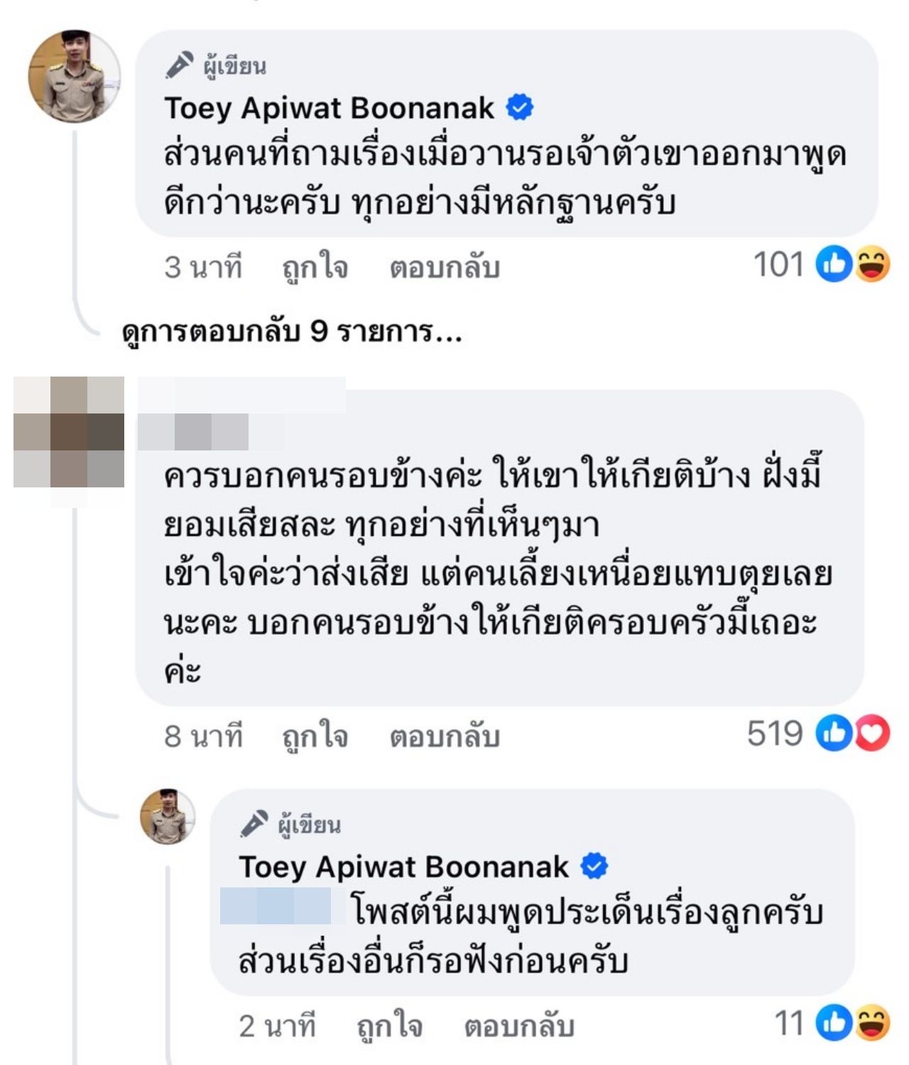 ในขณะที่บอกว่าห่วงใยความรู้สึกของเด็ก ซึ่งผมเข้าใจความรู้สึกนี้และก็มองเห็นในจุดนั้น แต่ผมอยากให้คิดให้ลึกกว่านี้ ว่าการกระทำแบบนั้นจะกระทบอนาคตของลูกอย่างไร หากเรารักและห่วงใยลูกจริง สิ่งที่ควรทำคือการปกป้อง ไม่ใช่ทำให้เด็กต้องรับภาระทางใจจากสื่อโซเชียล