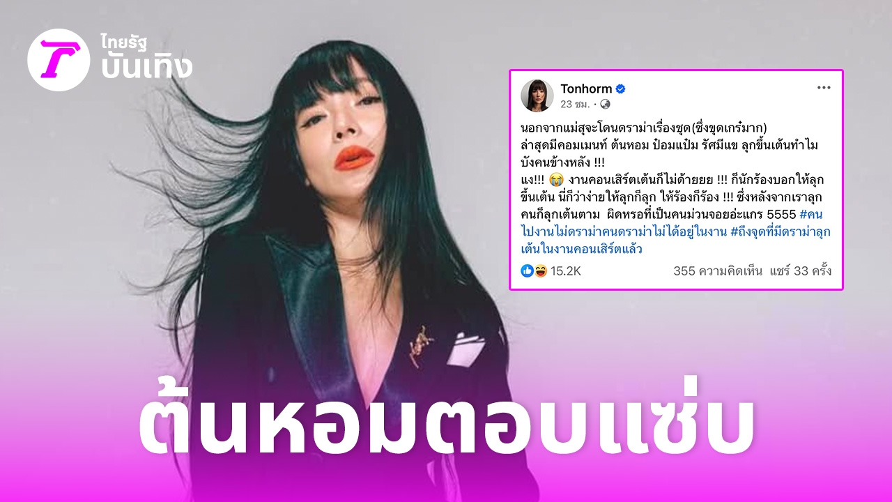 งานนี้ต้นหอมตอบแซ่บกลับไปว่า "ไม่จริง ขอเถียง นี่คือ ดีเจเอไทม์ บ.นี้จัดคอนเสิร์ตเยอะที่สุดใน ปทท ละมั้ง ไม่มีบัตรยืนค่ะ คอนเสิร์ตทุกที่ซื้อละต้องมีที่นั่ง ไม่มีแบ่งโซนเต้น โซนนั่ง โซนยืน ละไม่เคยมีคนในคอนเสิร์ตด่ากันว่า ลุกเต้นทำไม? งานหมอลำนี่เต้นหน้าฮ้าน ปีนเสา ด้วยนะ ไม่อกแตกตายหรอคะ"