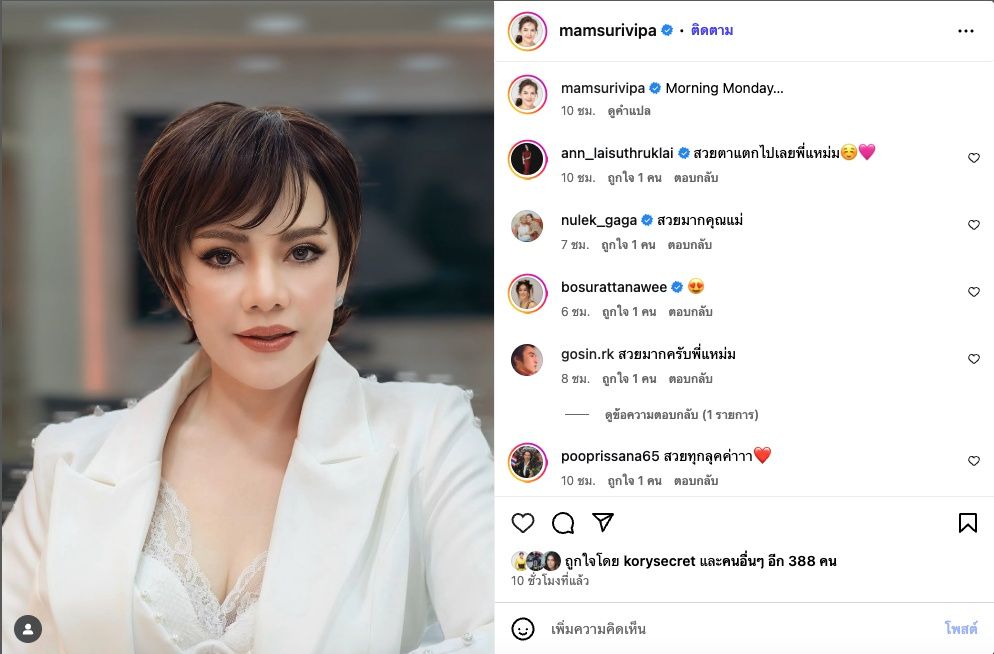 ล่าสุด หนูแหม่ม สุริวิภา เปิดภาพล่าสุดกับลุคผมสั้นที่ดูสวยหน้าเด็กจริงๆ เขียนแคปชั่น “Morning Monday…” ท่ามกลางคอมเมนต์จากคนในวงการบันเทิงและแฟนๆ แห่คอมเมนต์ชื่นชมความสวยรัวๆ