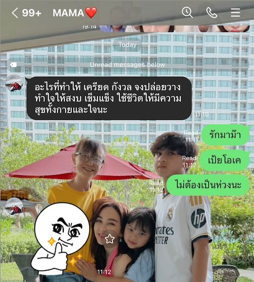 หลังจากเกิดเหตุการณ์ใหญ่จะกลายเป็นข่าว เป้ย ปานวาด ได้โพสต์ภาพแชตไลน์ที่พูดคุยกับคุณแม่ลงในไอจีสตอรี่ โดยคุณแม่ให้กำลังใจเป้ยว่า "อะไรที่ทำให้เครียด กังวล จงปล่อยวาง ทำใจให้สงบ เข้มแข็ง ใช้ชีวิตให้มีความสุขทั้งกายและใจนะ" ซึ่งเป้ยก็ตอบกลับว่า "รักมาม๊า เป้ยโอเค ไม่ต้องห่วงนะ"