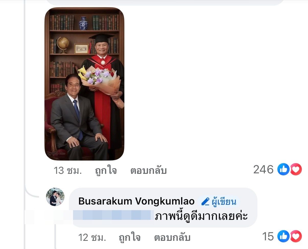 ล่าสุดลูกสาวสุดที่รักอย่าง เอ็ม บุษราคัม ก็ได้ขอความช่วยเหลือจากชาวเน็ตผ่านทางเพจ Lightroom ซึ่งเป็นเพจที่ขอให้คนในเพจช่วยแต่งภาพให้สวยงามตามที่ต้องการ โดยเอ็มได้โพสต์รูปพ่อหม่ำใส่ชุดครุย และรูปคุณปู่ พร้อมเขียนข้อความว่า "ฝากทำภาพแห่งความทรงจำให้คุณพ่อหน่อยค่า อยากให้คุณปู่อยู่ร่วมเฟรมกับคุณพ่อในวันที่คุณพ่อรับปริญญาค่ะ"