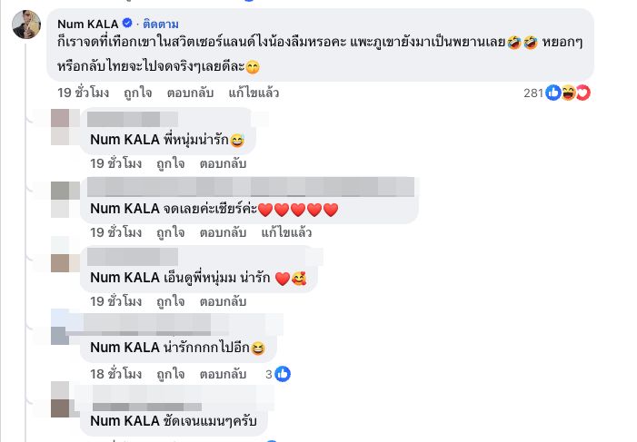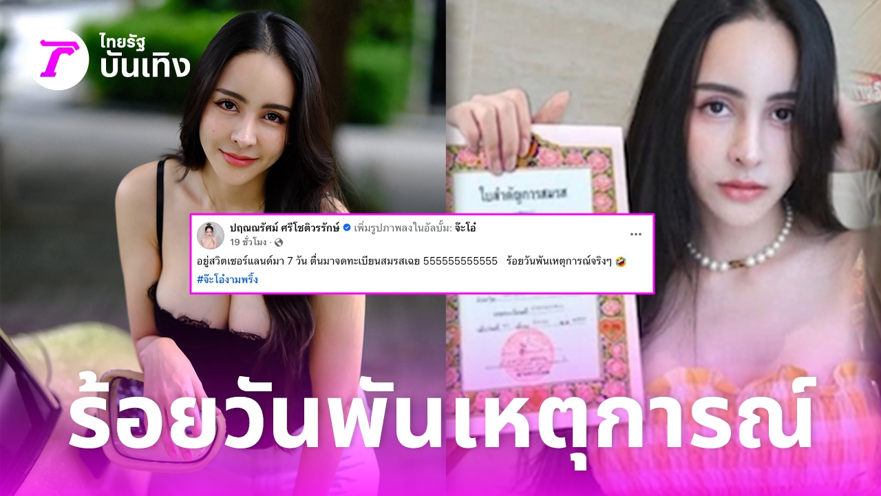 หลังจากที่จ๊ะโอ๋ได้เห็นภาพดังกล่าว ก็ได้โพสต์รูปต้นฉบับที่ไม่ได้เป็นรูปถือทะเบียนสมรส พร้อมกับเขียนแคปชั่นเอาไว้ว่า "อยู่สวิตเซอร์แลนด์มา 7 วัน ตื่นมาจดทะเบียนสมรสเฉย 555555555555 ร้อยวันพันเหตุการณ์จริงๆ" งานนี้ หนุ่ม กะลา ก็ได้เข้ามาคอมเมนต์ว่า "ก็เราจดที่เทือกเขาในสวิตเซอร์แลนด์ไงน้องลืมหรอคะ แพะภูเขายังมาเป็นพยานเลย หยอกๆ หรือกลับไทยจะไปจดจริงๆ เลยดีละ"