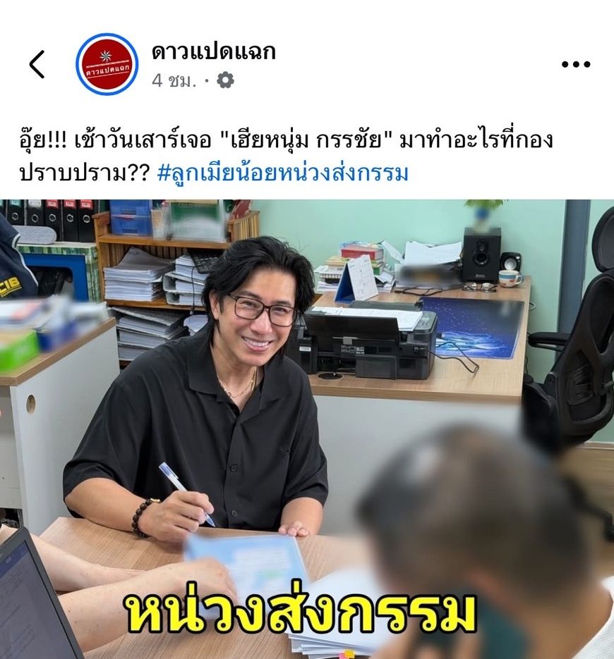 ทำเอาแฟนๆ ฮือฮาพร้อมกับเข้าไปคอมเมนต์กันยกใหญ่ หลังเพจ ดาวแปดแฉก ได้เผยภาพของพิธีกรชื่อดัง หนุ่ม กรรชัย กำเนิดพลอย ที่นั่งยิ้มอยู่ที่กองปราบ และเขียนข้อความในภาพว่า "หน่วงส่งกรรม" พร้อมแคปชั่นว่า