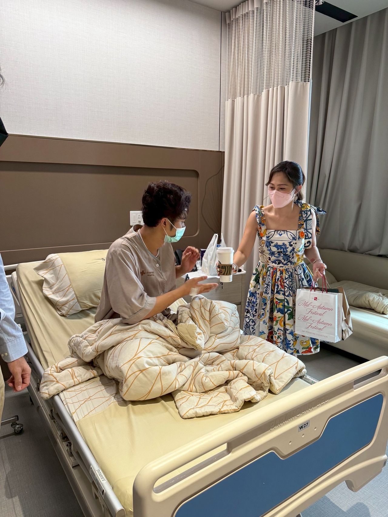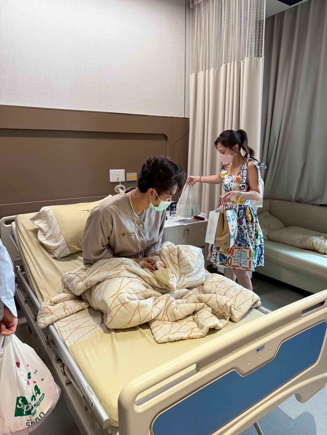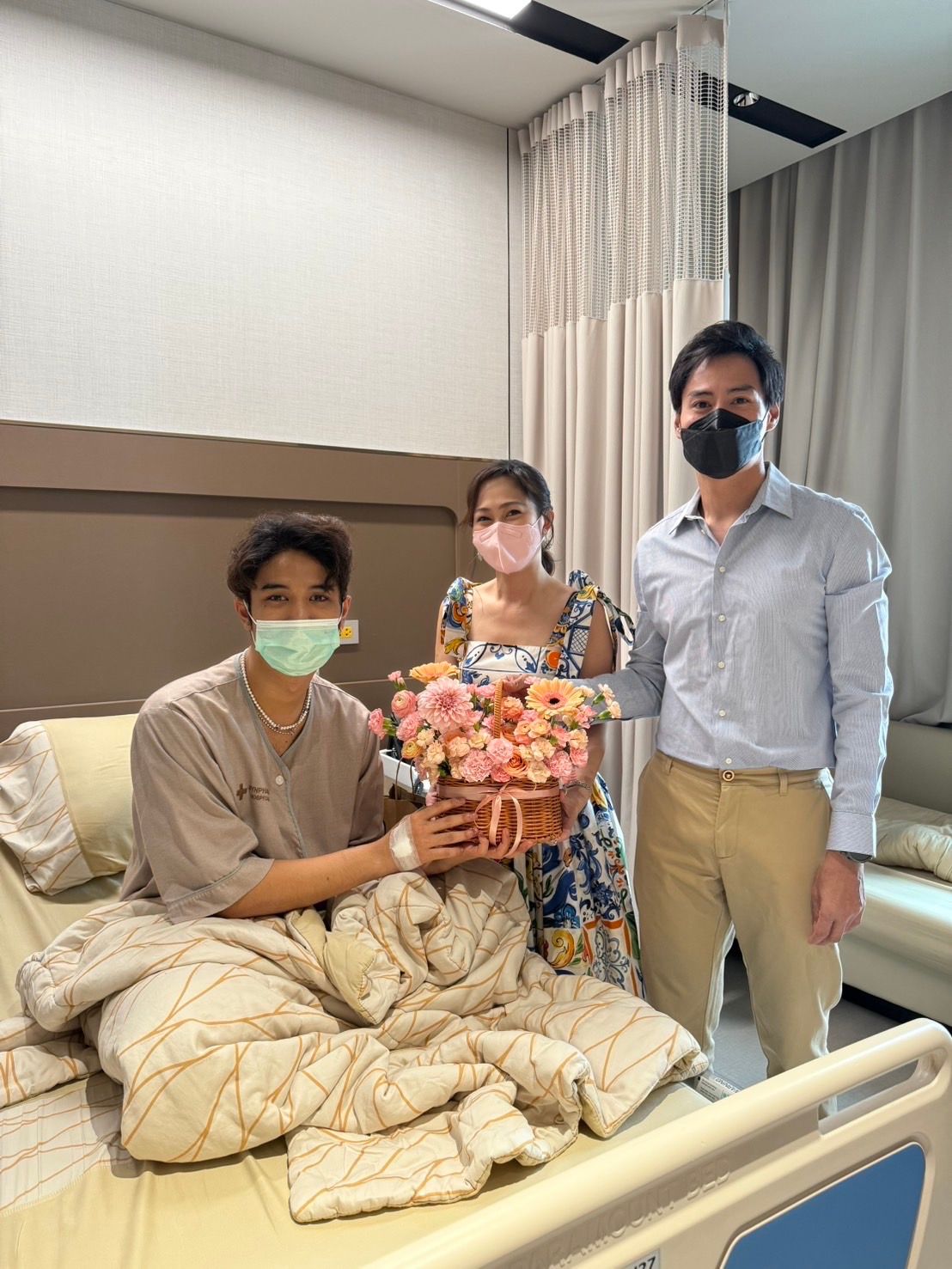 เยื่ยมถึงโรงพยาบาล นำกระเช้าดอกไม้และของกินบำรุงมาส่งถึงขอบเตียง ไฮโซน้ำหวานเผยว่า พอทราบข่าว ก็รีบมาเยื่อมน้องเลย ด้วยความที่บอสเป็นเด็กน่าเอ็นดู ร่วมงานกับแบรนด์สินค้าของน้ำหวานมาตลอด ทั้งไปทำงานต่างประเทศด้วยกันน้องเต็มที่ไม่งอแง ไม่เรื่องเยอะ