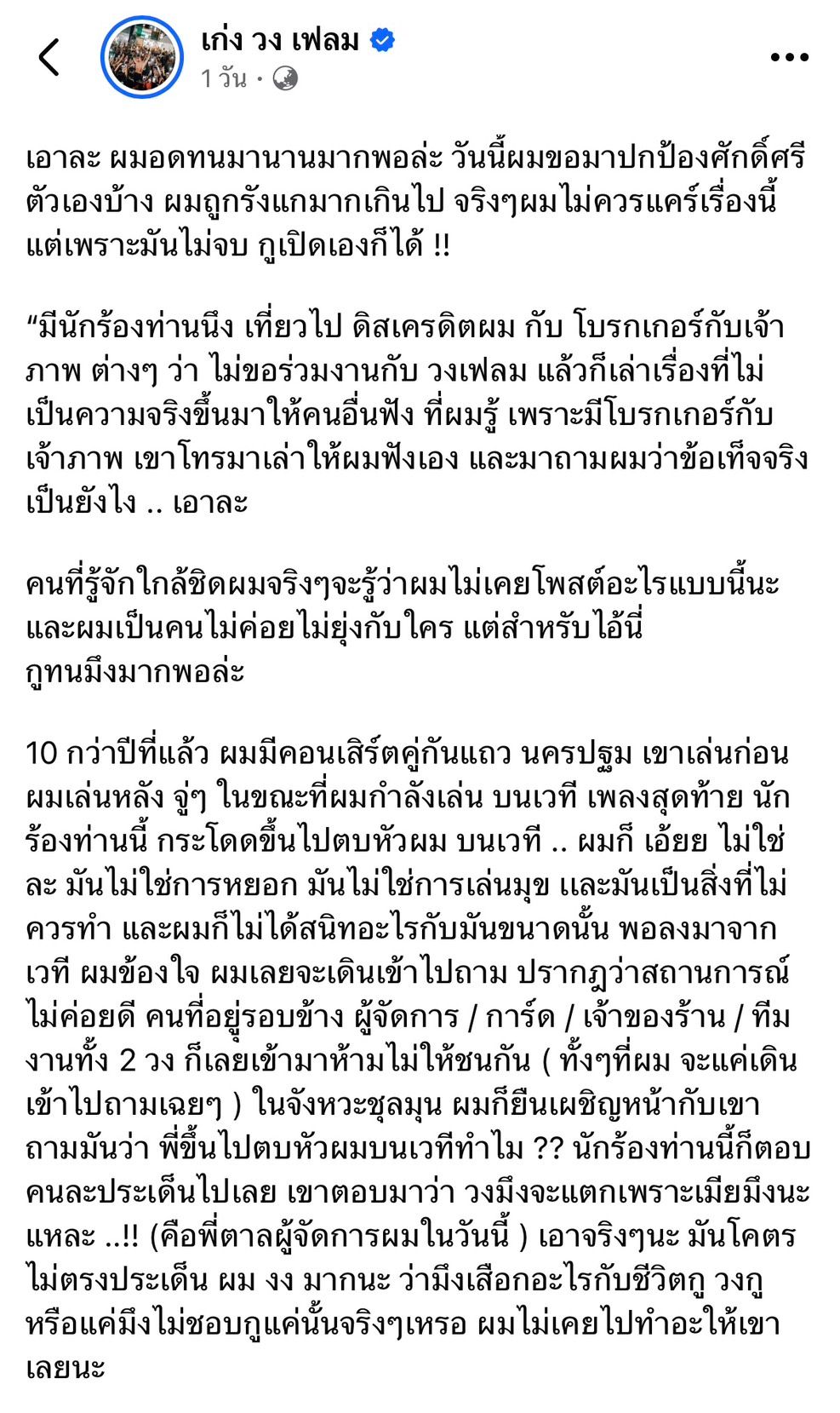 คนที่รู้จักใกล้ชิดผมจริงๆ จะรู้ว่าผมไม่เคยโพสต์อะไรแบบนี้นะ และผมเป็นคนไม่ค่อยยุ่งกับใคร แต่สำหรับไอ้นี่กูทนมึงมากพอล่ะ