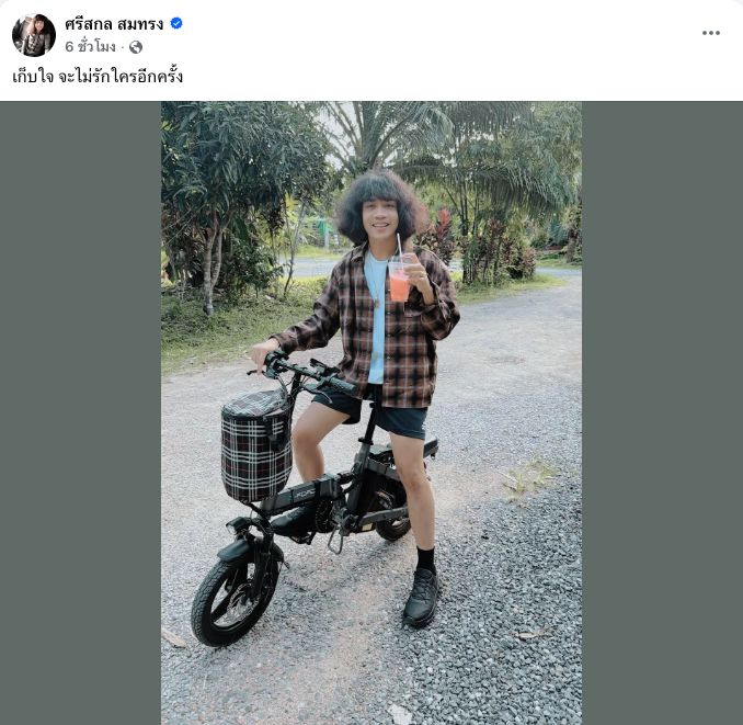 ล่าสุด ปุ้ย ได้โพสต์ภาพตัวเองที่มาพร้อมกับรอยยิ้ม และเขียนแคปชั่นว่า "เก็บใจ จะไม่รักใครอีกครั้ง"