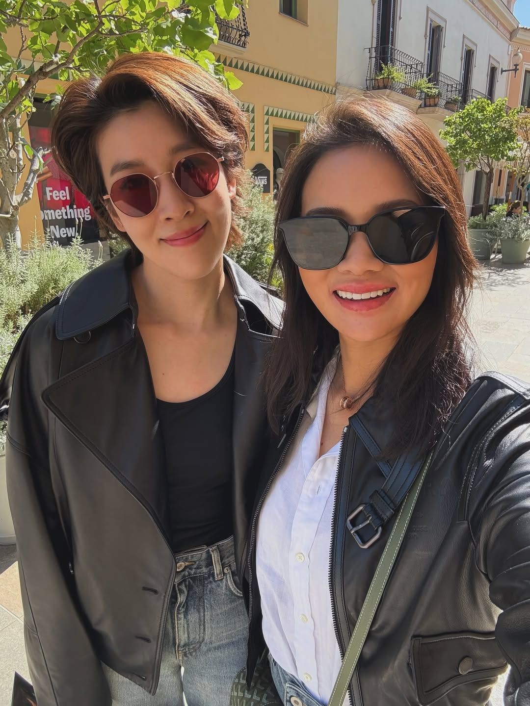 โดยในภาพเซตนี้ก็มีภาพเดี่ยวและภาพคู่กับเชียร์ สังเกตเห็นว่าทั้งคู่ใส่เสื้อแจ็กเก็ตสีดำเหมือนกัน แถมใส่แว่นกันแดดคู่กันเพิ่มความเท่มากขึ้นกว่าเดิม ส่องคอมเมนต์นอกจากจะมีคนแซวความหวานแล้ว ด้านเชียร์ก็แสดงความคิดเห็นว่า “Gorgeous!!” และใส่อีโมจิปิดปากแบบเขินๆ รวมถึงอีโมจิแลบลิ้นด้วย