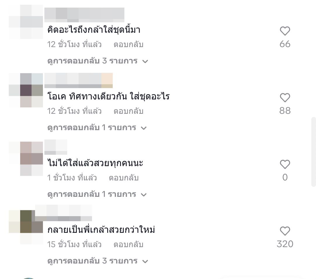 และหลังจากที่คลิปดังกล่าวถูกเผยแพร่ออกไปในโซเชียล งานนี้ก็มีชาวเน็ตเข้ามาคอมเมนต์วิจารณ์ชุดที่ใหม่ใส่ไปในทิศทางเดียวกันมากมายว่า "คิดอะไรถึงกล้าใส่ชุดนี้มา, นึกว่าใส่แพมเพิร์ส, มองเห็นโม๊ะก่อนเลย, อยากรู้ว่าหายใจออกไหม, หรือตาเราไม่ถึง มองไงสวย, กลายเป็นพี่เกล้าสวยกว่าใหม่, เข้าไม่ถึงชุดคะ.อย่าดราม่านะคะเข้าไม่ถึงจริงๆ ค่ะ 555555, ฉันไม่ได้มองหน้าเลย"