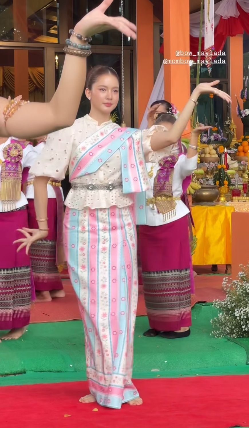 แม้ว่าบางมุมของนางเอกสาว โบว์ เมลดา จะดูขี้เล่น แสนซน แต่ในมุมเรียบร้อย สวยหวานก็มีเช่นกัน อย่างล่าสุด โบว์ เมลดา ได้เดินทางไปที่จังหวัดนครพนม เพื่อร่วมรำถวายสิ่งศักดิ์สิทธิ์ ในงานทอดกฐินสามัคคี ที่วัดหัวดอน จ.นครพนม ซึ่งงานนี้โบว์มาในชุดไทยพื้นเมือง สีชมพูสุดหวาน