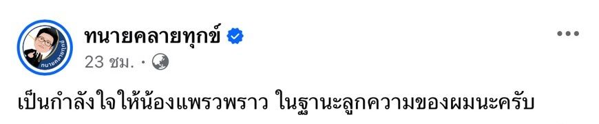 ก่อนจะโพสต์ภาพร่วมเฟรมกับ แพรวพราว แสงทอง นักร้องลูกทุ่งหมอลำชื่อดัง รวมถึง ซัน วงศธร แฟนหนุ่ม และเขียนข้อความว่า “มาเยี่ยมเยียนค่ายท็อปไลน์มิวสิค มาเทสต์เสียงก่อนเผื่อจะได้เป็นนักร้อง แซวเล่นนะครับ 555” อีกทั้งยังแชร์ข่าวที่แพรวพราวโพสต์ทำนองตัดพ้อหลังเจอคนวิจารณ์ว่าไลฟ์ไปก็ไม่มีคนดู พร้อมทั้งบอกว่า “เป็นกำลังใจให้น้องแพรวพราว ในฐานะลูกความของผมนะครับ”