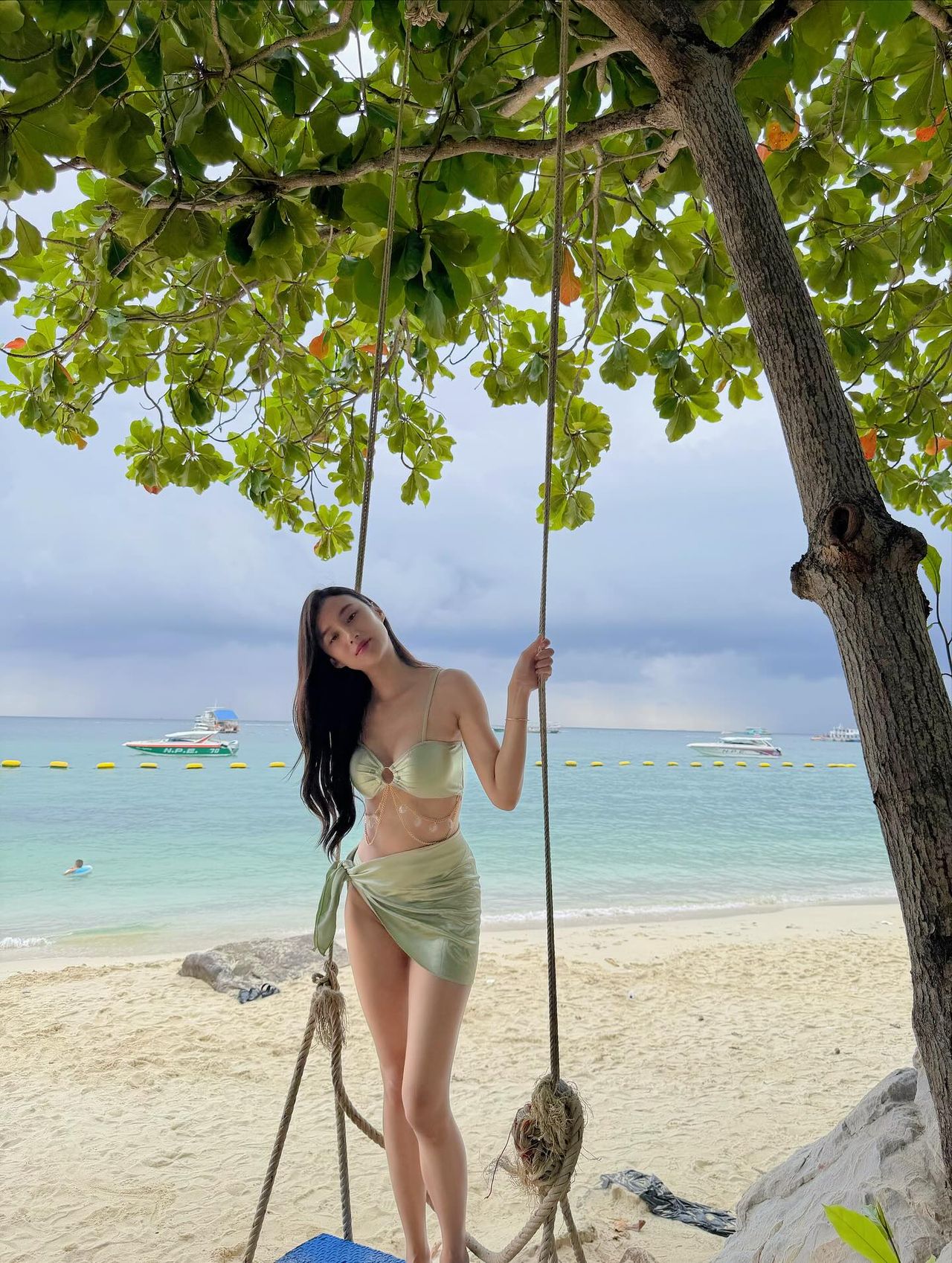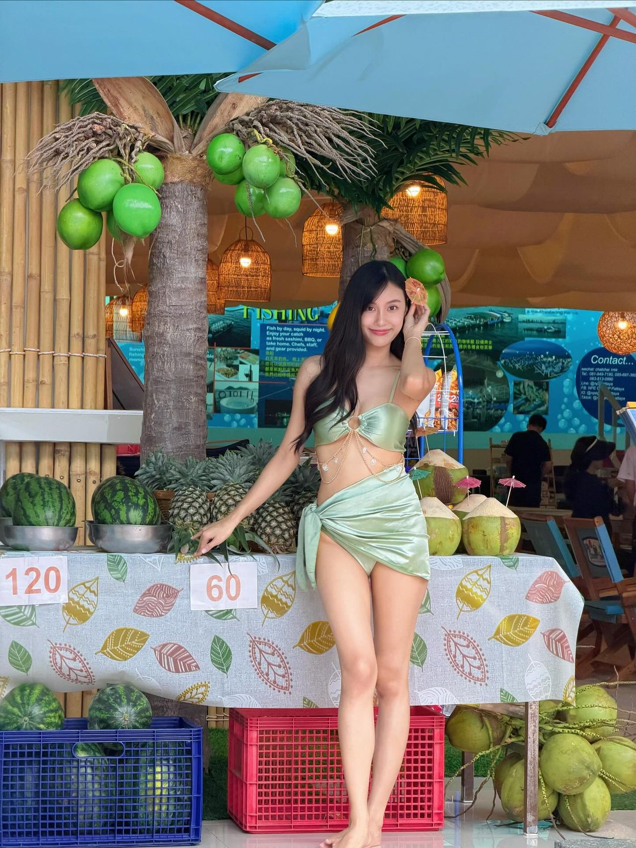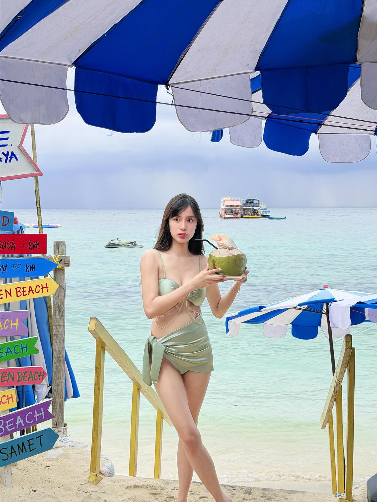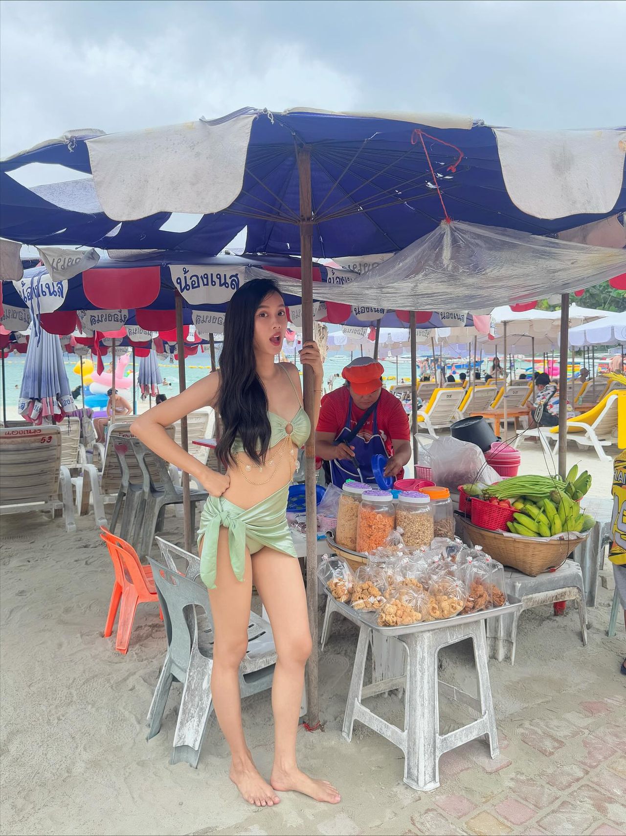 ซึ่ง เก๋ไก๋ ก็ได้โพสต์ภาพตัวเองแบบรัวๆ ขณะอยู่ในชุดบิกินี่ผ้าซาตินตัวจิ๋ว แถมยังมีช็อตเด็ดยืนซื้อยำมะม่วงอยู่ริมหาด แม้จะดูแซ่บ แต่ไม่โป๊มาก ยังคงความน่ารักสไตล์เก๋ไก๋