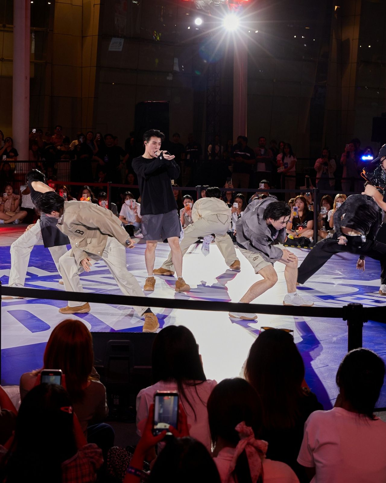 สำหรับไฮไลท์ของงานคือการปรากฏตัวของ 6 หนุ่มสุดฮอตจากวง PROXIE นำโดย กัน - รัชชานนท์ เรือนเพ็ชร์, คิม - ปัณณธร จิรศาสตร์, โชกุน - ปวริศร์ ศรีชัยชนะ, กร - กร วรรณไพโรจน์, อองรี - ออสการ์ เอ็ดเวิร์ด วัตราเศรษฐ์ และวิคเตอร์ – วรเมธ กอนุประพันธ์ ซึ่งทั้ง ทั้ง 6 หนุ่มมาในลุคสตรีทสุดเท่จากคอลเลกชัน Fall/Winter 2025 ที่ผสมผสานโทนสีกับดีไซน์วินเทจ รวมถึงรองเท้ารุ่น Trophy Vintage ที่ช่วยอัปลุคให้หล่อเท่แบบจัดเต็มในสไตล์เฉพาะตัวของ MLB พร้อมโชว์สเต็ปสุดพิเศษกับ 3 เพลงฮิต อย่าง Bad Shawty, Kiss Kiss และ ตบปาก เสียงกรี๊ดจากเหล่า Random Player และแฟนคลับที่มาร่วมงานอย่างล้นหลาม