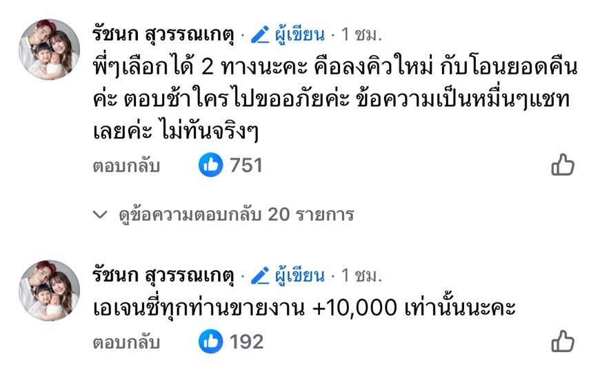 เอเจนซี่ "เรื่องที่ว่าไม่ได้เงินคืน มันนานแล้ว "