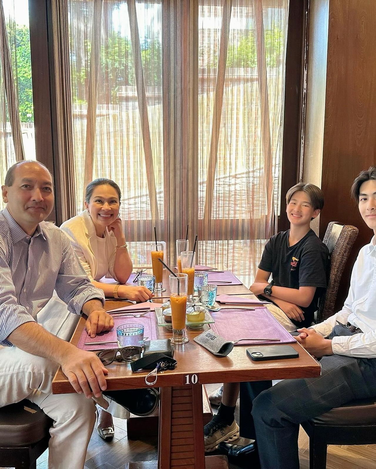 "คุยกับแม่ทุกเรื่องนะคะ แชร์กับคุณพ่อทุกเรื่องเหมือนกัน คิดว่าด้วยวัยที่มีอยู่ตอนนี้เขาก็น่าจะคุยกับแม่ง่ายขึ้นหน่อยง่ายกว่าพ่อ เพราะบางทีพ่ออาจจะเป็นคนจริงจังแล้วก็ไม่ได้ต้องอย่างงี้ต้องอย่างงั้น เขาก็เลยจะบางอย่าง ลูกผู้ชายก็จะเลี้ยวมาทางแม่ก่อน ว่าไปคุยกับพ่อให้หน่อย แต่พี่อย่างหนึ่งคือพี่ก็ชอบที่จะทำให้บรรยากาศในบ้านมันดีที่สุดเท่าที่ทำได้ ให้เรายอมที่สุดก็ยินดี เพื่อให้ทุกคนมีความสุข เรายอมเสียสละ"
