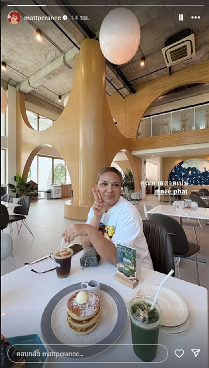 ล่าสุด แมท ภีรนีย์ เปิดคลิปและภาพโมเมนต์น่ารักผ่านทางไอจีสตอรี่ @mattperanee ซึ่งจะเห็นได้ว่า คุณแม่นีย์ พัชนีย์ คงไทย คุณแม่ของแมท ที่ตอนนี้กำลังจะเป็นคุณยาย คอยอยู่เคียงข้างแมทไม่ห่าง พาไปเที่ยวคาเฟ่ชิลๆ ซึ่งแมทก็เขียนแคปชั่นแซวคุณแม่ของตัวเองว่า “คุณยายสายเปย์”