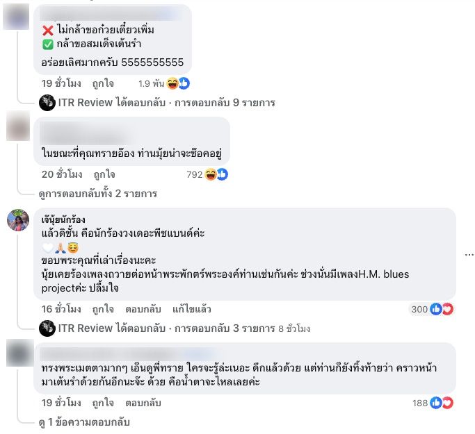 และข้อความ “เอาจริงๆ ตอนไปโค้งท่าน เรารู้สึกสมเหตุสมผลมากนะ 5555 ใช่แหละ ต้องใช่แหละ จนโดนท่านมุ้ยดุอะ ถึงได้สติ ว่าฉันทำอะไรลงไปปปปปปปปป”