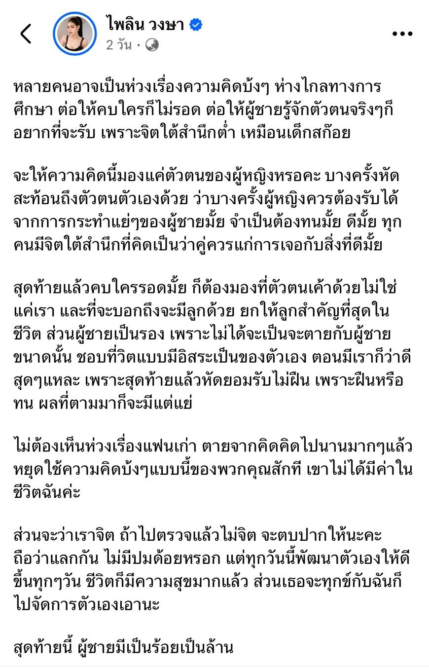 เลิกรากับอดีตสามี และเดินหน้าทำงานต่อเพื่อลูก และทำในสิ่งที่ตัวเองรัก สำหรับนักร้องและนางงามสาว แบม ไพลิน แต่มิวายยังโดนแซะถึงอดีตที่ผ่านมาอยู่เรื่อยๆ