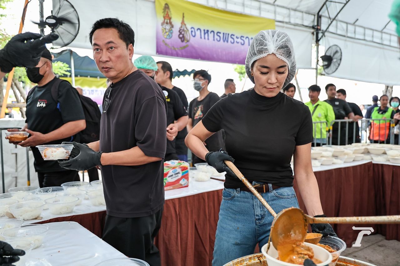 อย่างวันนี้ก็จะเป็นพี่เปิ้ล นาคร มีขนมจีนมาให้ 1,000 ชุด ในแต่ละวันก็จะมีศิลปินดาราอยากจะมาร่วมงานตรงนี้ แต่อาจจะทำทุกวันเหมือนเราไม่ไหวก็เลยจะมาแบบคนนั้นมาวันนั้น คนนั้นมาวันนี้ บุ๋ม ปนัดดาก็มีหน้าที่จัดคิวให้
