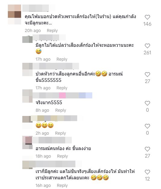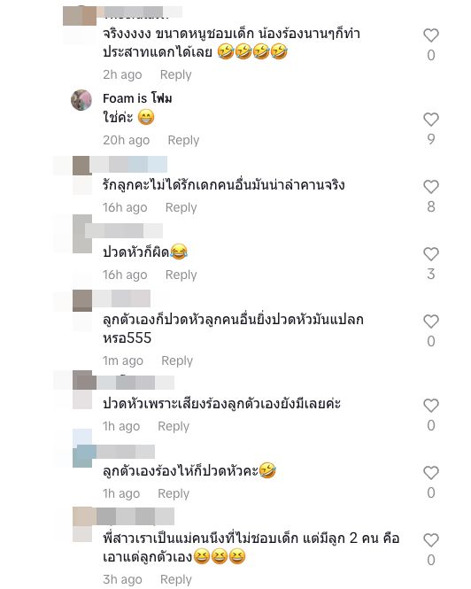 หลังจากที่ได้ดูคลิปดังกล่าว ก็มีชาวเน็ตเข้ามาคอมเมนต์ติง โฟม เบญจมาศ ว่า "คุณโฟมบอกปวดหัวเพราะเด็กร้องไห้(ในร้าน) แต่คุณกำลังจะมีลูกนะคะ…" งานนี้ก็มีชาวเน็ตอีกหลายคนเข้ามาคอมเมนต์แสดงความคิดเห็นเกี่ยวกับเรื่องนี้ว่า "มีลูกไม่ได้แปลว่าเสียงเด็กร้องไห้จะหอมหวานนะคะ, ปวดหัวกว่าเสียงลูกคนอื่นอีกค่ะ อารมณ์ขึ้น 5555555, อารมณ์คนท้อง ค่ะ ขึ้นลงง่าย, เราก็มีลูกค่ะ แตไม่ชินจริงๆ เสียงเด็กร้องไห้ มันทำให้เราประสาทแดกได้เลยนะคะ, จริงงงงง ขนาดหนูชอบเด็ก น้องร้องนานๆก็ทำประสาทแดกได้เลย" และว่าที่คุณแม่ก็เข้ามาคอมเมนต์ต่ออีกว่า "ใช่ค่ะ" พร้อมอีโมจิหน้ายิ้มแฉ่ง