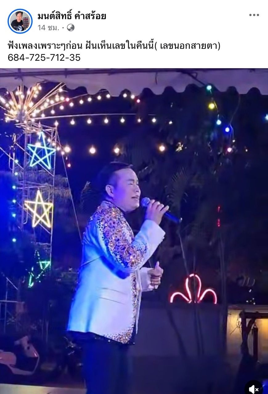 ล่าสุด มนต์สิทธิ์ คำสร้อย โพสต์คลิปตัวเองร้องเพลงที่งานคอนเสิร์ตงานหนึ่ง พร้อมทั้งเขียนแคปชั่นบอกเลขเด็ดให้แฟนๆ ได้นำไปเสี่ยงโชคประจำงวดวันที่ 1 พ.ย. 2568 โดยบอกว่า “ฟังเพลงเพราะๆ ก่อน ฝันเห็นเลขในคืนนี้ (เลขนอกสายตา) 684-725-712-35”