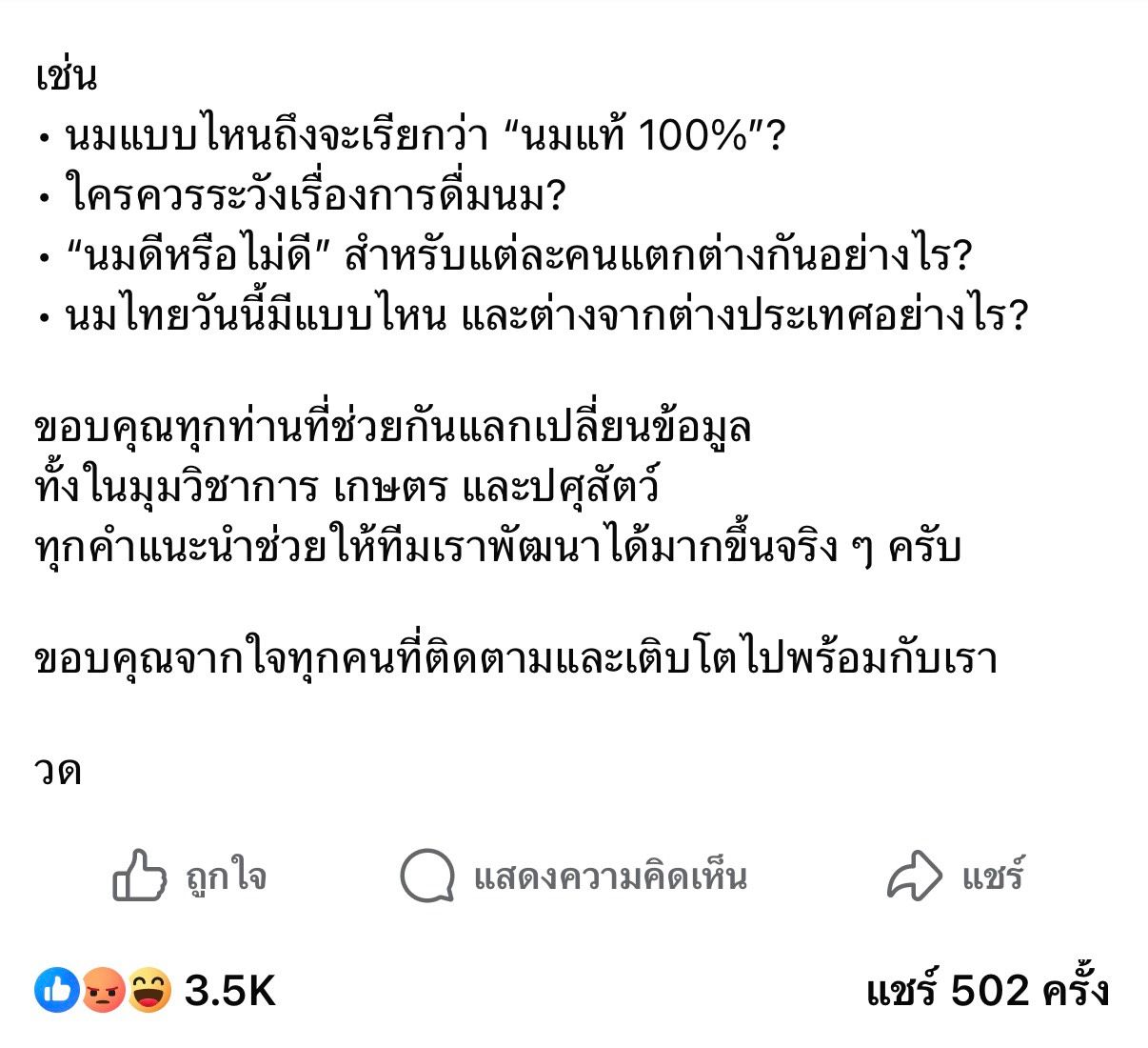 - ถ้าอยู่เมืองไทยอยากกินนมจริง ไม่ใช่นมผง ต้องเป็น นม grass fed และมีการระบุว่า “ของแท้มีน้อยกว่าที่คิด และบางกล่องอาจไม่เคยแตะวัวจริงเลย”
