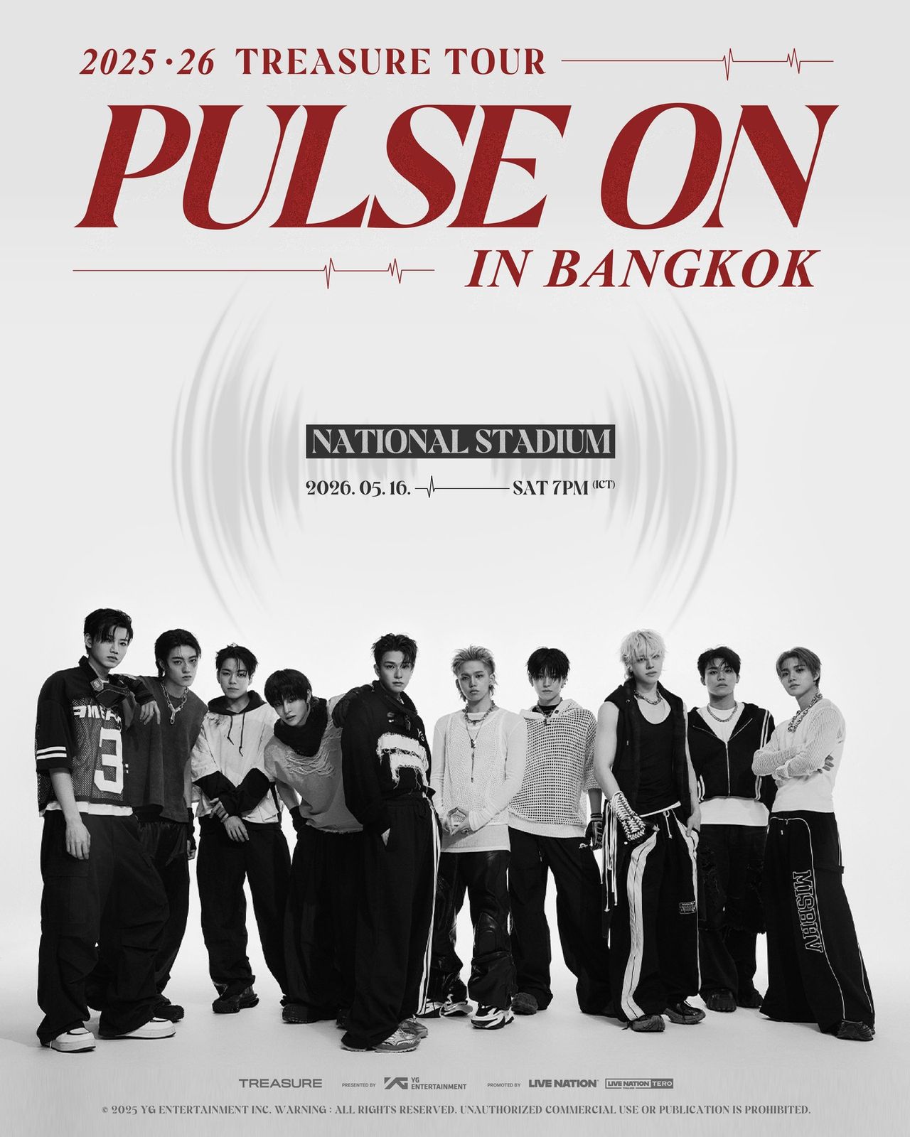 TREASURE เตรียมนำความสนุก ความมันส์ สุดขั้วมาเสิร์ฟทึเมไทยถึงที่ กับคอนเสิร์ตครั้งใหญ่ “2025-26 TREASURE TOUR [PULSE ON] IN BANGKOK” ที่สนามกีฬาแห่งชาติ (ศุภชลาศัย) วันเสาร์ที่16 พฤษภาคม 2569 ทึเมไทยเตรียมตัวกดบัตรรอบพรีเซลส์ได้ตั้งแต่ 27 พฤศจิกายนนี้เป็นต้นไป รายละเอียดเพิ่มเติมที่ livenationtero.co.th