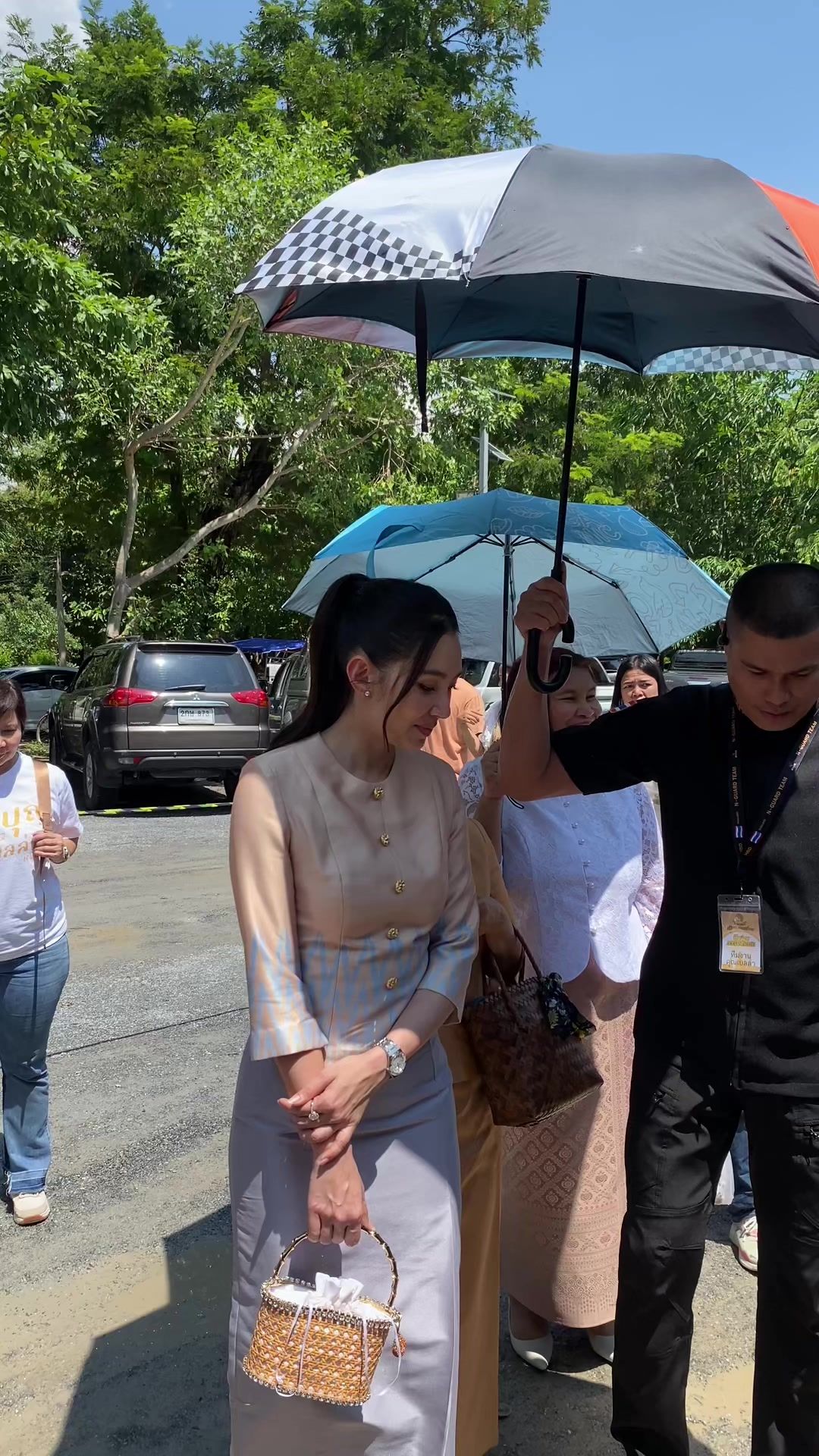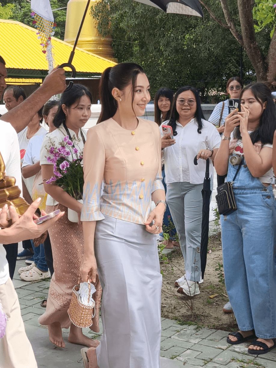 วันนั้นมันเป็นวันที่ฝนตกหนักมาก พิธีการเลยล่าช้า และแป๊บนึงก็แดดออก พักนึงก็ฝนตก ดังนั้นทีมงานเขาก็เลยจัดคนมาคอยกางร่มให้น้องเบลเพื่อสแตนด์บายตลอด ตรงนี้เราไม่ได้ร้องขอนะคะ แต่ทางงานบุญงานวัดเขาเห็นน้องเบลเป็นประธานเจ้าภาพ สละทรัพย์ส่วนบุคคลและเอาเงินมาทำกฐินให้กับวัดที่ไม่มีเจ้าภาพหลายวัด ดังนั้นเขาก็บริการเล็กน้อยกลับมาให้เราเป็นน้ำใจ