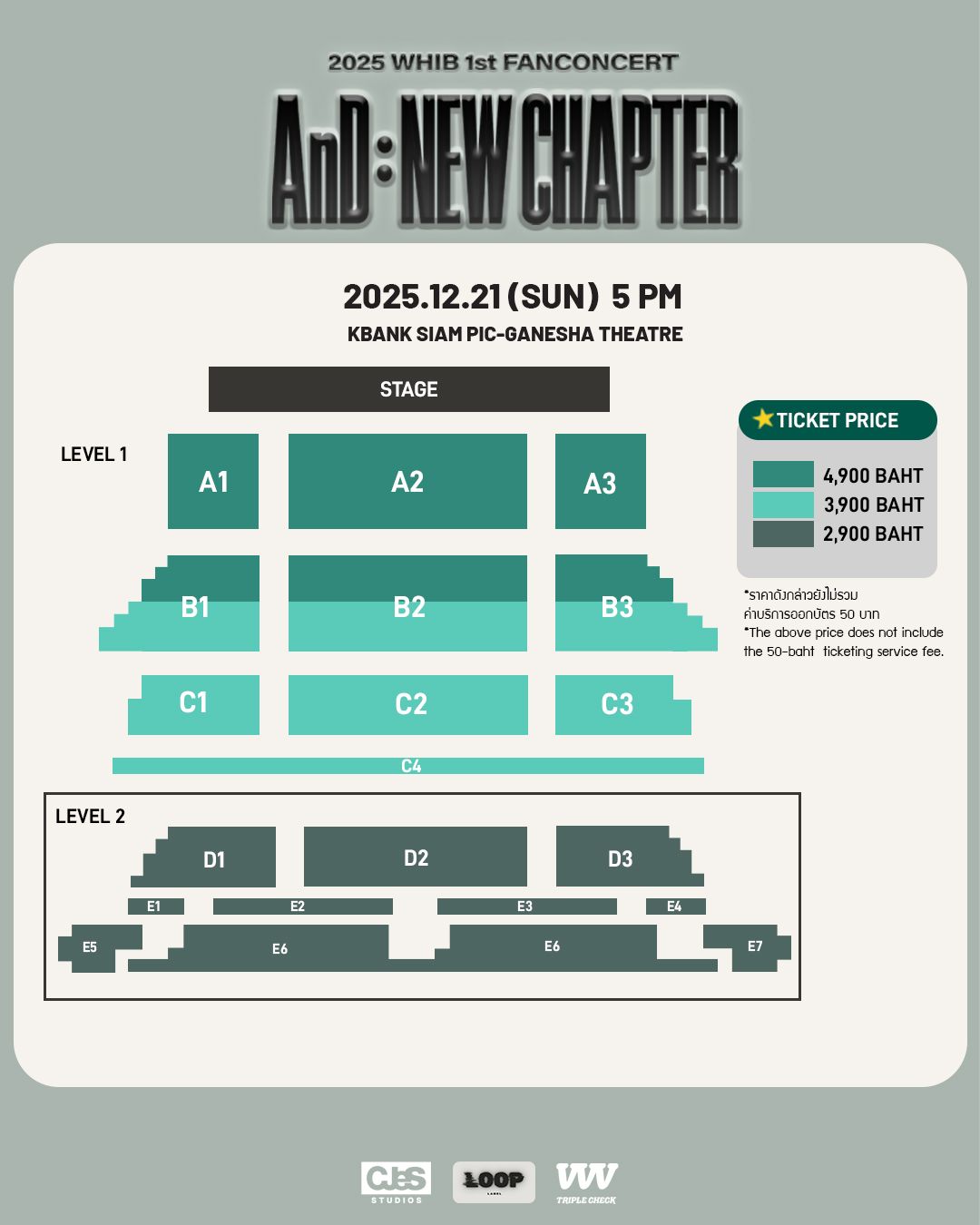 โดยงาน “WHIB 1st FANCON [AnD : New Chapter] In Bangkok” จะเปิดจำหน่ายบัตรในวันอาทิตย์ที่ 30 พฤศจิกายน 2568 ตั้งแต่เวลา 11.00 น. เป็นต้นไป ทางเว็บไซต์ www.triplech.com ราคาบัตรอยู่ที่ 4,900 / 3,900 / 2,900 บาท บัตรทุกราคาจะได้รับสิทธิ์ Hi Touch และโปสการ์ดพิเศษ BKK-Only Postcard (All Member) ที่จัดทำขึ้นเฉพาะแฟนคอนในกรุงเทพเท่านั้น! พิเศษสุดสำหรับผู้ถือบัตรราคา 4,900 บาท รับสิทธิ์ถ่าย Group Photo (7:10) ทุกท่าน พร้อมรับสิทธิ์สุ่มผู้โชคดี 80 ท่าน เพื่อรับโปสเตอร์ที่ศิลปินจะเซ็นให้เองกับมือ ส่วนผู้ถือบัตรราคา 3,900 บาท ก็มีสิทธิ์ลุ้นรับโปสเตอร์ที่ศิลปินจะเซ็นให้เองกับมือเช่นกันอีก 20 ท่าน และได้รับสิทธิ์สุ่มถ่าย Group Photo (7:10) จำนวน 50 ท่านด้วย