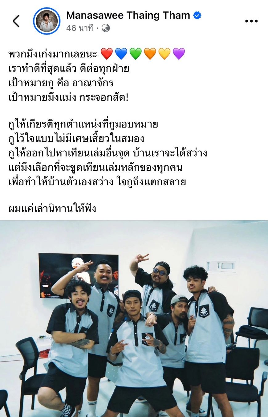 ล่าสุด อาร์ม OHANA หรือ อาร์ม มนัสวี หนึ่งในทีมผู้บริหาร ก็ได้ออกมาโพสต์ภาพกลุ่มเพื่อนๆ แต่ไร้ภาพของ เดอะมีน อยู่ในรูป ซึ่งเนื้อหานั้นดูดุเดือดและเจ็บปวด โดยกล่าวถึงการไว้ใจ แต่กลับถูกทรยศด้วยการ “ขูดเทียนเล่มหลักของทุกคน เพื่อทำให้บ้านตัวเองสว่าง” และยังบอกอีกว่า เป้าหมายของมึงกระจอกสุดๆ