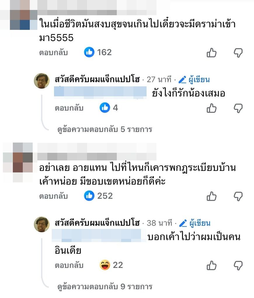 แจ็กแปปโฮ “ขอบคุณครับน้อง พี่อ่านบรรทัดเดียวพี่ก็พอใจแล้วครับ พี่ไม่ต้องอ่านต่อไปแล้วครับ พี่ชอบบรรทัดแรก”