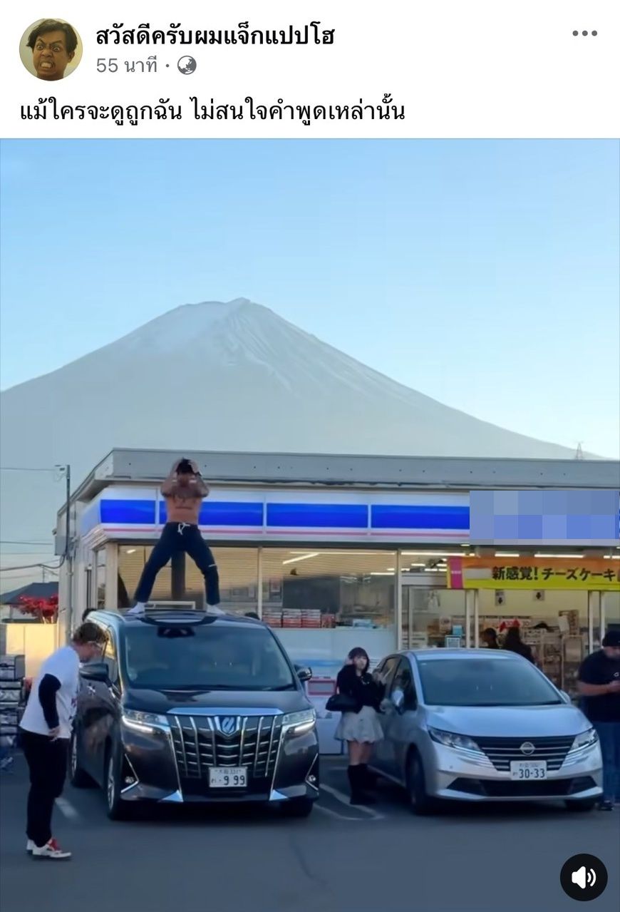แต่งานนี้เกิดดราม่าอย่างหนัก เมื่อเจ้าตัวได้ลงคลิปที่ถอดเสื้อและขึ้นไปยืนเต้นบนหลังคารถ ที่บริเวณด้านหน้าร้านสะดวกซื้อ Lawson (ลอว์สัน) สาขาเมืองฟูจิกาวากุจิโกะ ซึ่งเป็นจุดถ่ายภาพยอดฮิตที่มีฉากหลังเป็นภูเขาไฟฟูจิ ท่ามกลางสายตาและกล้องโทรศัพท์ของนักท่องเที่ยวและคนในพื้นที่ที่กำลังบันทึกภาพ พร้อมเขียนแคปชั่นว่า “แม้ใครจะดูถูกฉัน ไม่สนใจคำพูดเหล่านั้น”