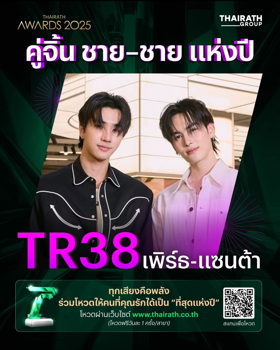 ผู้ที่สร้างผลงานโดดเด่นจนกลายเป็นปรากฏการณ์ไปทั่ววงการบันเทิง เพื่อค้นหา "คู่จิ้นชาย-ชาย ที่สุดแห่งปี" ชิงรางวัล " ไทยรัฐที่สุดแห่งปี 2025"