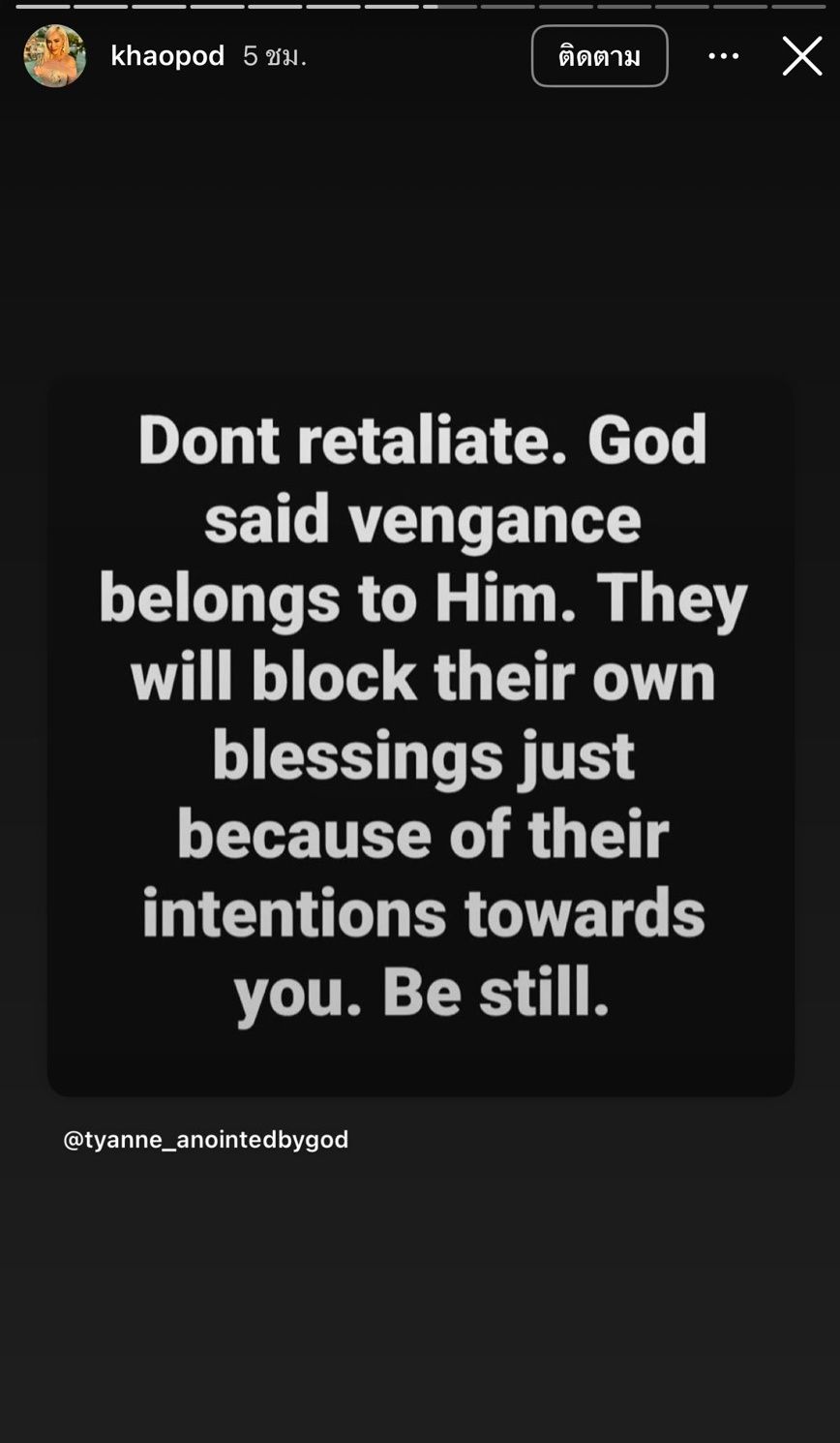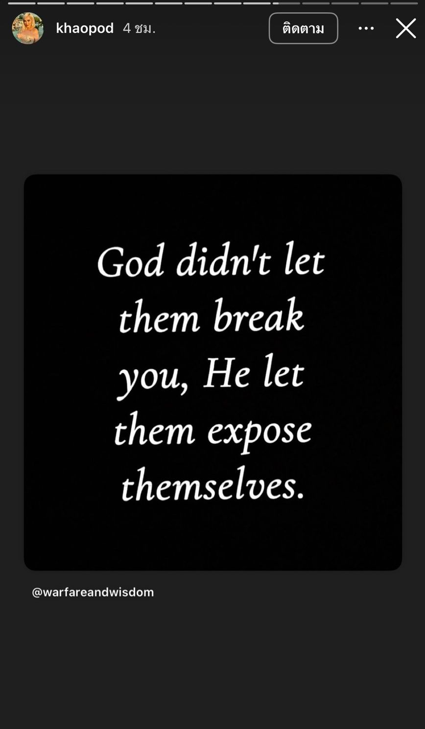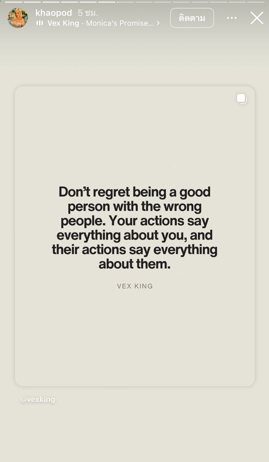 ซึ่งเนื้อหาคำคมที่เจ้าตัวโพสต์พูดเกี่ยวกับเรื่องคน อาทิ Don’t regret being a good person with the wrong people your actions say everything about you and their actions say everything about them (อย่าเสียใจที่เป็นคนดีกับคนไม่ดี การกระทำของคุณบอกทุกอย่างเกี่ยวกับตัวคุณ และการกระทำของพวกเขาบอกทุกอย่างเกี่ยวกับพวกเขา), Don’t retaliate God said vengeance belongs to him they will block their own blessings just because of their intentions towards you Be still (อย่าตอบโต้ พระเจ้าตรัสว่าการแก้แค้นเป็นของพระองค์ พวกเขาจะปิดกั้นพรของตนเองเพียงเพราะเจตนาที่พวกเขามีต่อคุณ จงสงบนิ่ง), God didn’t let them break you he let them expose themselves (พระเจ้าไม่ได้ปล่อยให้พวกเขาทำลายคุณ แต่พระองค์ปล่อยให้พวกเขาเปิดเผยตัวเอง), พระเจ้าคัดคนออกจากชีวิตของคุณ เพราะท่านได้ยินบทสนทนาที่คุณไม่ได้ยิน ฯลฯ