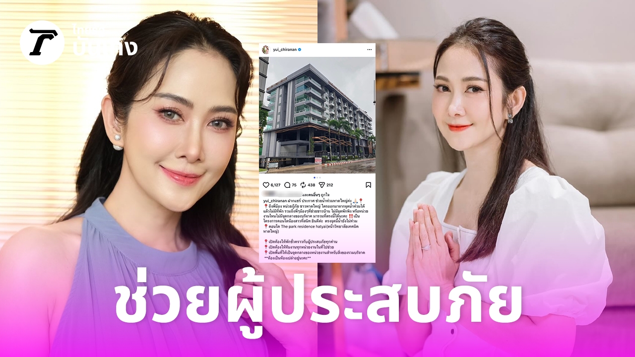 ล่าสุดนางเอกสาว ยุ้ย จีรนันท์ มะโนแจ่ม แชร์โพสต์ประกาศช่วยเหลือผู้ประสบภัยน้ำท่วมหาดใหญ่และยังคงอยู่ในภาวะวิกฤต โดยในโพสต์ดังกล่าวมีทั้งภาพคอนโดใน อ.หาดใหญ่ จ.สงขลา ที่พร้อมเปิดรับให้ผู้ประสบภัยเข้ามาพักอาศัย พร้อมทั้งเขียนข้อความดังนี้
