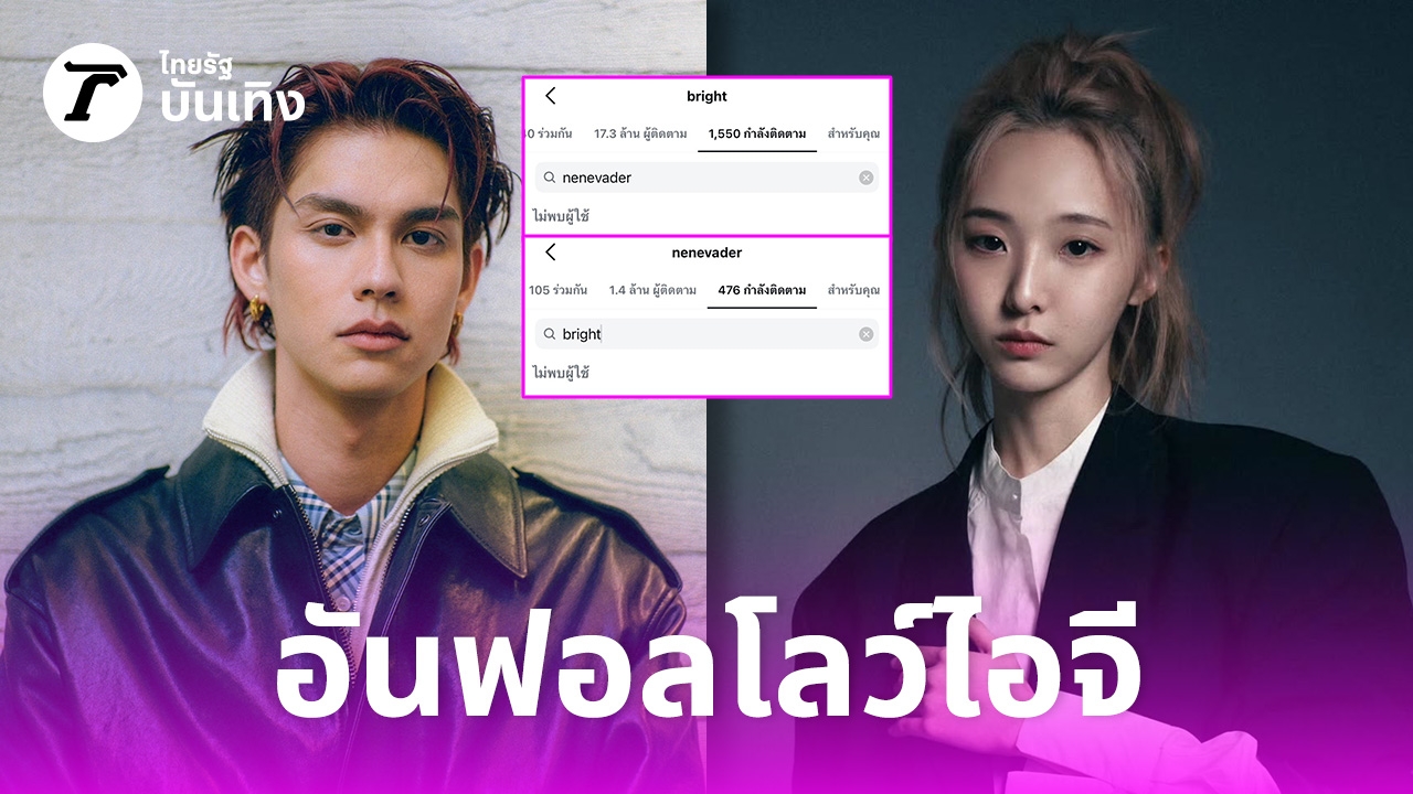 และล่าสุดชาวเน็ตก็ตั้งข้อสังเกตว่า ไบร์ท-เนเน่ อันฟอลโลว์ไอจีกันแล้ว และเมื่อมีกระแสข่าวในโซเชียล ชาวเน็ตหลายคนก็แสดงความคิดเห็นว่าอาจจะไม่ได้ฟอลโลว์กันตั้งแต่แรกหรือเปล่า แต่ก็มีชาวเน็ตบางส่วนที่บอกว่าเดือนที่แล้วไปส่องดูยังฟอลโลว์กันอยู่เลย ทั้งนี้คงต้องรอฟังจากปากของทั้งคู่จะดีที่สุดนะจ๊ะ