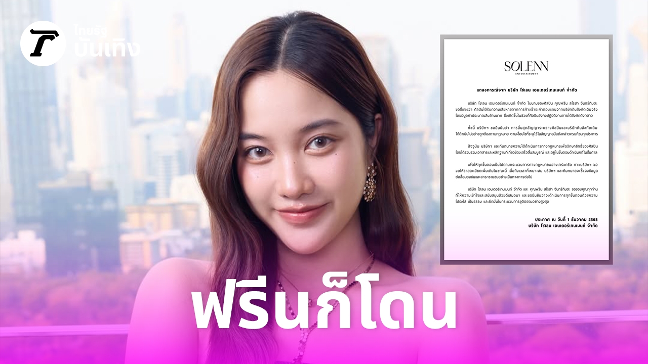 ในวันนี้ (1 ธ.ค. 68) ต้นสังกัดของนักแสดงสาว ฟรีน สโรชา อย่าง โชเลน เอนเตอร์เทนเมนท์ ได้ออกแถลงการณ์ถึงกรณีของต้นสังกัดเก่าเอาไว้ว่า