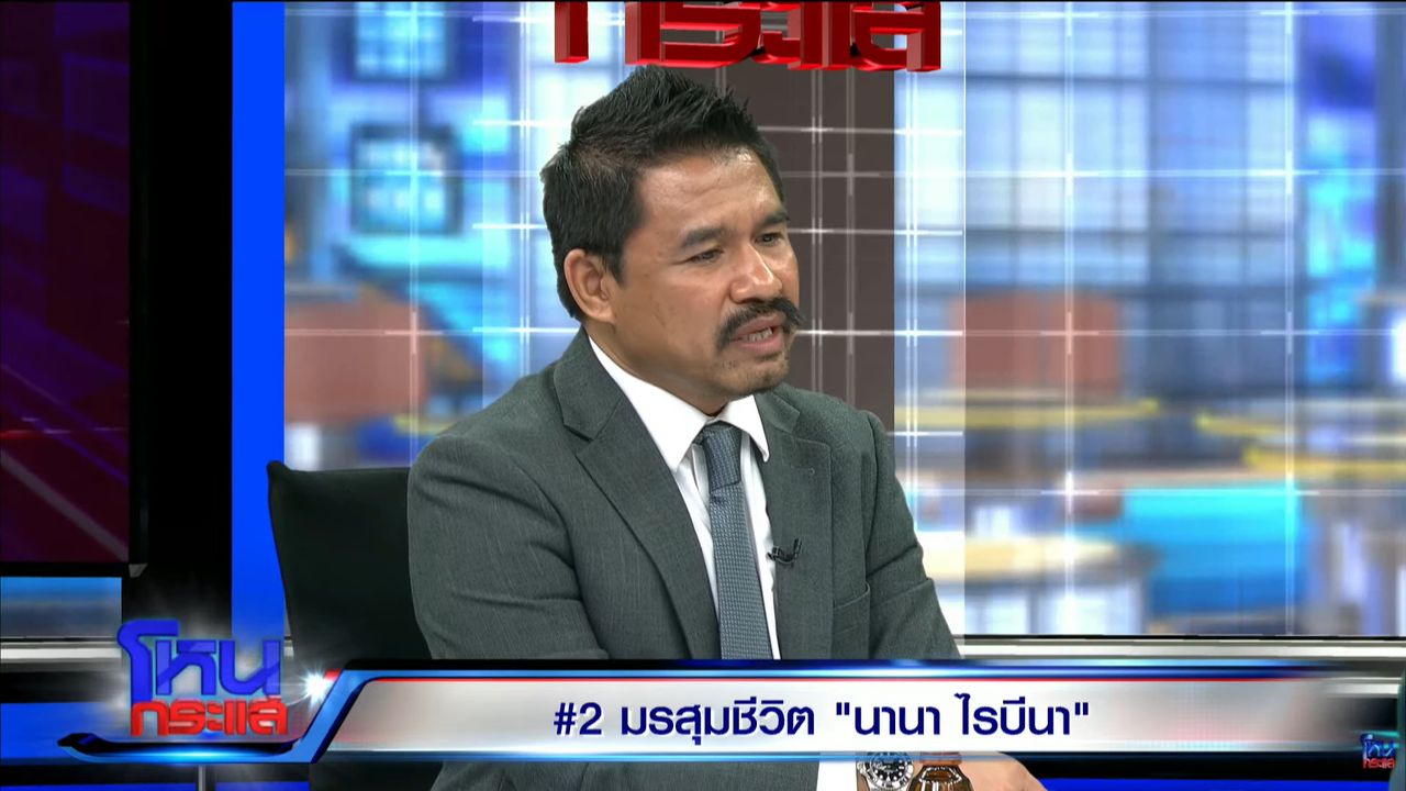 รายการ “โหนกระแส” ทางช่อง 3 หนุ่ม กรรชัย กำเนิดพลอย ถาม ทนายสายหยุด เพ็งบุญชู หรือ ทนายปาเกียว ถึงเรื่อง เวย์ ไทยเทเนี่ยม สามีของ นานา ไรบีนา จะเป็นยังไงต่อไป ทนายสายหยุด ตอบว่า ของพี่เวย์เมื่อวานมีเหตุการณ์อยู่ พนักงานสอบสวนโทรมาตามผมว่าให้ไปดูของกลาง อาจจะคืนให้ในบางส่วนที่ไม่เกี่ยวข้อง เช่น แหวนแต่งงาน ซึ่งยึดแหวนแต่งงานเขาไปด้วย ผมก็ให้ลูกความผมไป