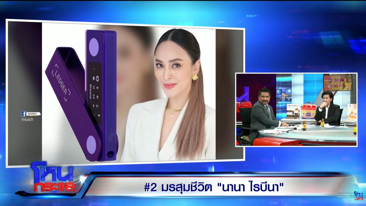 ซึ่งทางเวย์ไปสอบสวนกลางเมื่อวานตอนเย็น ไปกับทีมงานผม แต่พอไปถึงไม่ได้พูดถึงเรื่องคืนแหวนแต่งงาน จะให้ไปเปิดกระเป๋าเงินดิจิตอลอะไรสักอย่างที่เขายึดไป (กระเป๋า Ledger) ที่เขาลือกันว่ามีเหรียญเท่านั้นเท่านี้ หนุ่มถามว่าแล้วมีไหม ทนายสายหยุดตอบว่ามันมีเหรียญชิบะญี่ปุ่นเป็นเงินไม่กี่บาท ผมก็ไม่ได้ให้เปิด เพราะว่าเท่ากับหลอกให้เขามาว่าจะคืนแหวนเขา มาถึงจะให้เขาเข้ารหัส ผมบอกถ้าแบบนี้ต้องออกหมายไปเรียกให้เขามา