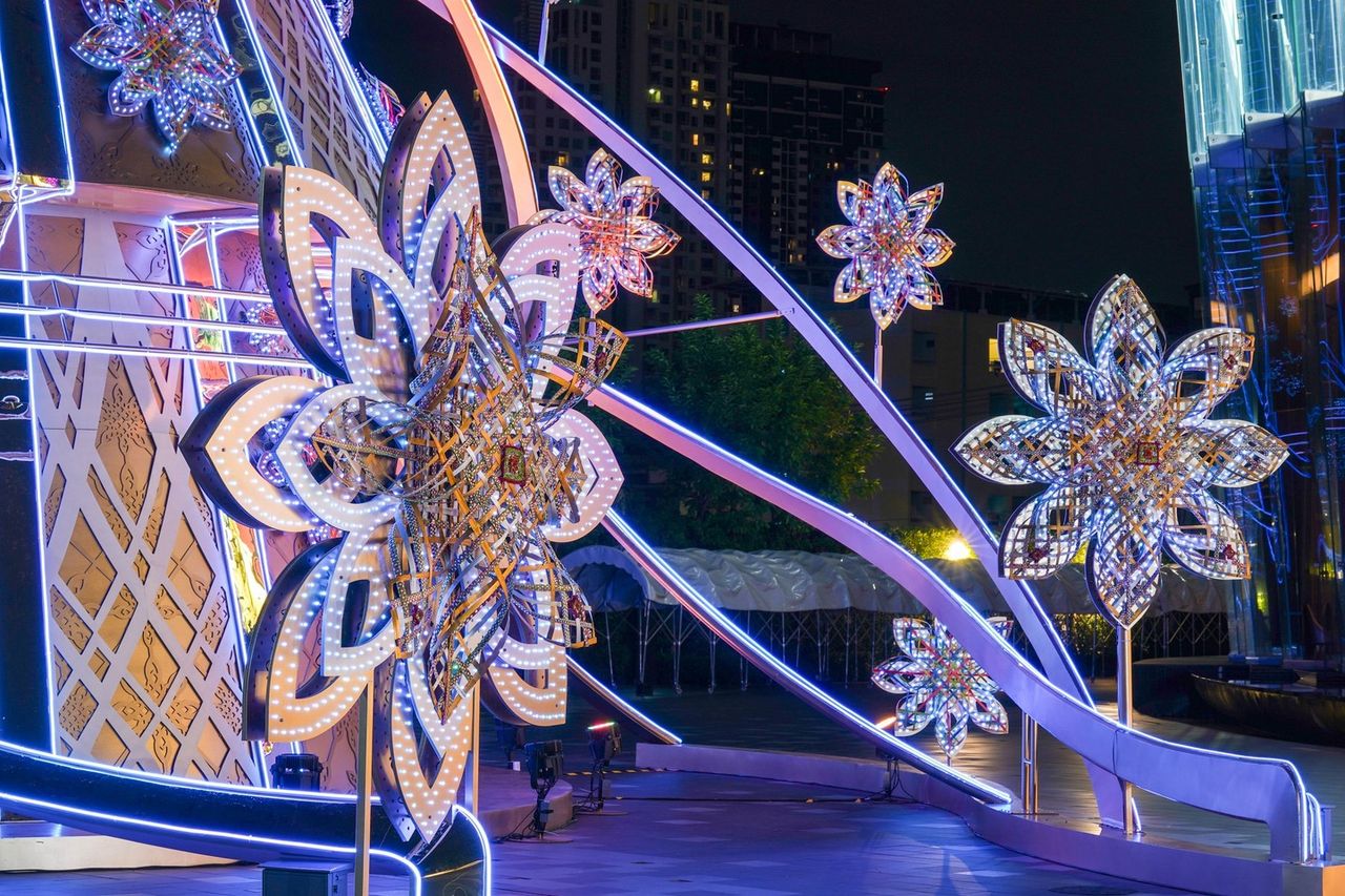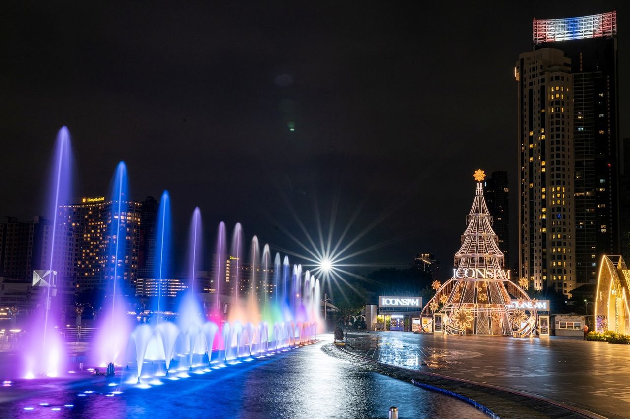 ปีนี้ ไอคอนสยามเนรมิตพื้นที่ ริเวอร์ พาร์ค ริมแม่น้ำเจ้าพระยา ให้กลายเป็นแลนด์มาร์กที่ต้องแวะมาถ่ายรูปเช็คอินลงโซเชียล กับ ต้นคริสต์มาสสูงกว่า 20 เมตร ที่ประดับไฟระยิบระยับสุดตระการตา โดยมีความพิเศษอยู่ที่ดีไซน์ลวดลายบนต้นคริสต์มาส ซึ่งได้แรงบันดาลใจจากหัตถศิลป์ไทย “ตุง” ผลงานที่ผ่านขั้นตอนการสร้างสรรค์โดยชาวบ้านจังหวัดชัยภูมิ ถูกนำมาดัดแปลงจากรูปทรงคล้ายใยแมงมุม สัญลักษณ์แห่งการดักทรัพย์ สู่ดีไซน์ใหม่ในรูปแบบ Snowflakes ห้าแฉก เปรียบเสมือนการดักเก็บและส่งต่อความสุขให้ผู้มาเยือน พร้อมสะท้อนอารมณ์เทศกาลคริสต์มาสและฤดูหนาวอย่างงดงาม ร่วมสัมผัสเสน่ห์ของสายน้ำผ่านการแสดง “ICONIC Multimedia Water Feature” ระบำสายน้ำกับการแสดงแสง สี และเสียงสุดอลังการ ที่จะทำให้ทุกคนเพลิดเพลินในบรรยากาศริมแม่น้ำเจ้าพระยาที่สวยงามเกินบรรยาย