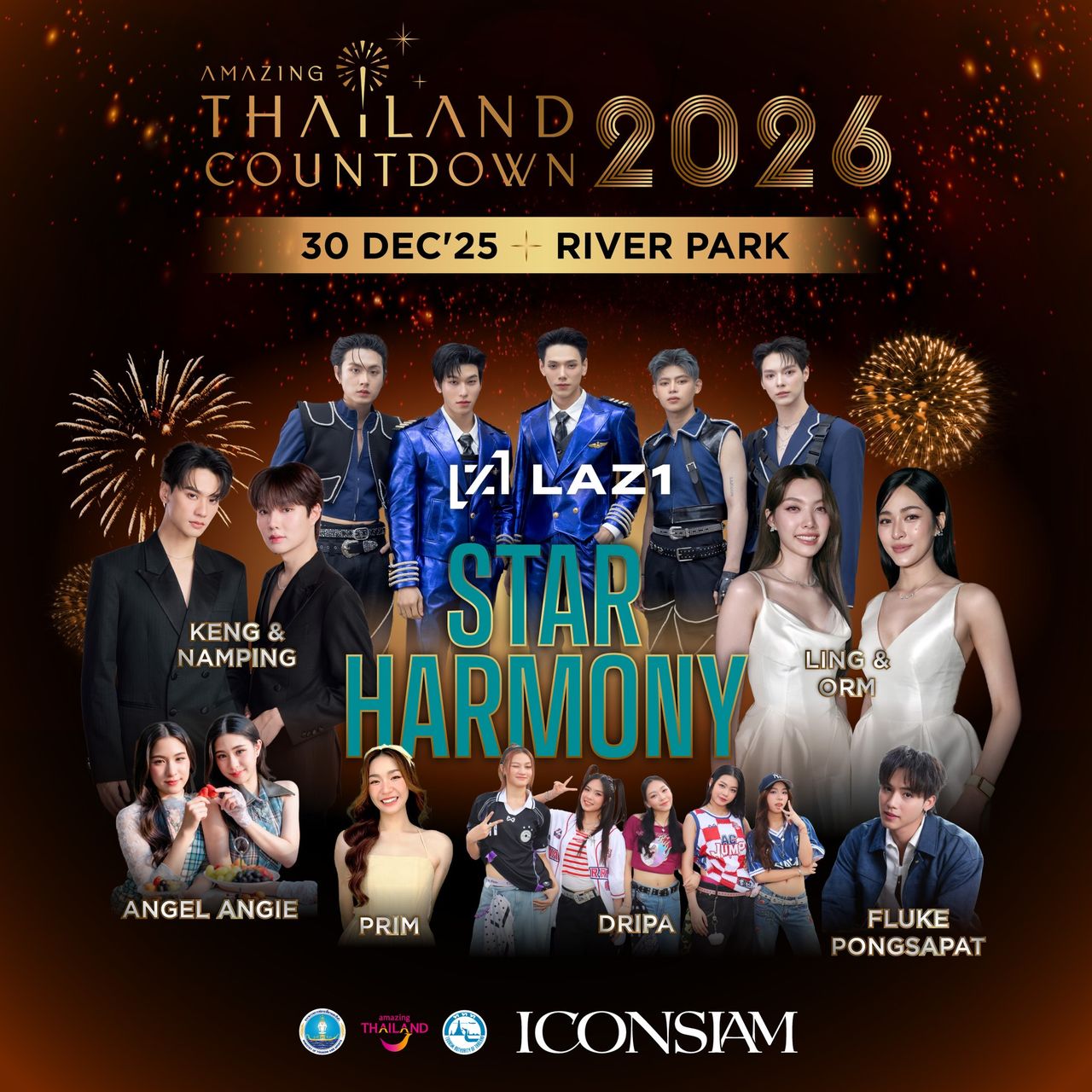 วันที่ 30 ธันวาคม 2568 ค่ำคืนพิเศษที่ทำให้การส่งท้ายปีเก่าต้อนรับปีใหม่เต็มไปด้วยโมเมนต์แห่งความประทับใจที่สุด ตั้งแต่การกลับมารวมตัวแบบครบวงอีกครั้งของ LAZ1 การแสดงสุดเอ็กซ์คลูซีฟจากหลิง-ออม จนถึงสัมผัสไปกับบรรยากาศของเคมีที่ดีมาก ๆ ระหว่าง เก่ง-น้ำปิง และยังมีเซอร์ไพรส์อีกเพียบจาก Angel Angie, Prim, DRIPA, Fluke Pongsapat และ In The 8ight ภายในคอนเซ็ปต์ STAR HARMONY