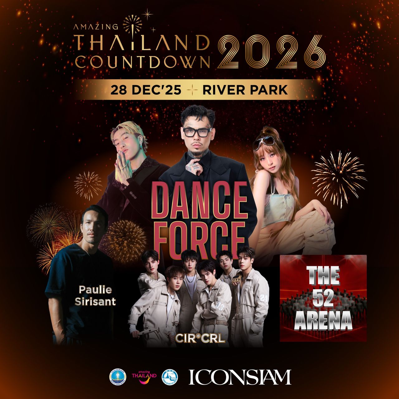 วันที่ 28 ธันวาคม 2568 ความบันเทิงแบบไร้ขีดจำกัดจะถูกนำเสนอในรูปแบบของ DANCE FORCE ให้ทุก Gen ได้รวมพลังเป็นหนึ่งเดียวทั้งกรี๊ด ทั้งเต้น ในโมเมนต์ที่สนุกที่สุดแห่งปี นำโดย URBOYTJ, CDGUNTEE & NARA, CIR*CRL, THE 52 ARENA และ Paulie Sirisant (DJ) พร้อมเนรมิตพื้นที่ริเวอร์ พาร์คให้กลายเป็น Riverfront Dance Arena ฟลอร์เต้นรำขนาดใหญ่ที่สุดริมเจ้าพระยา