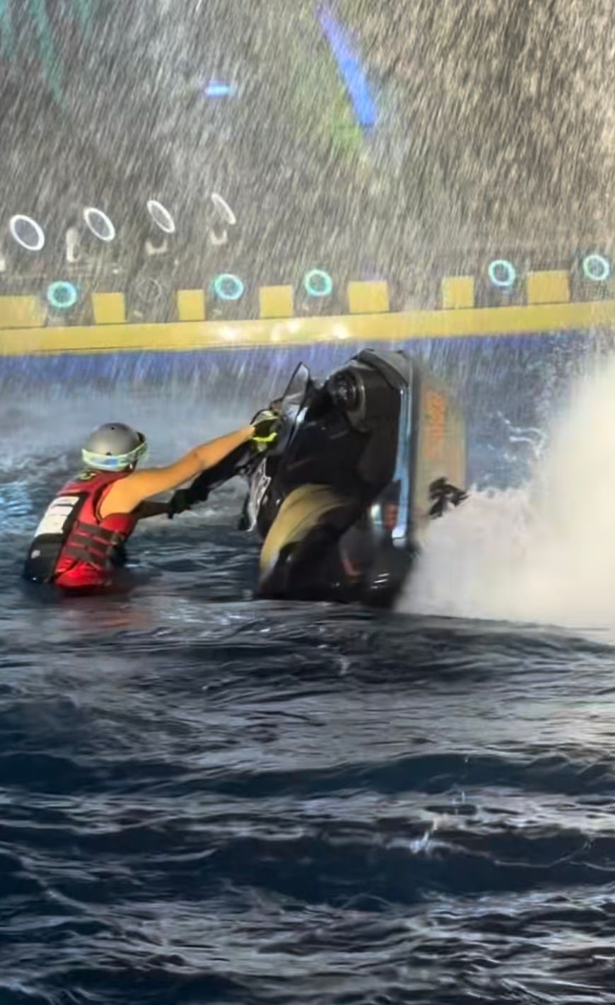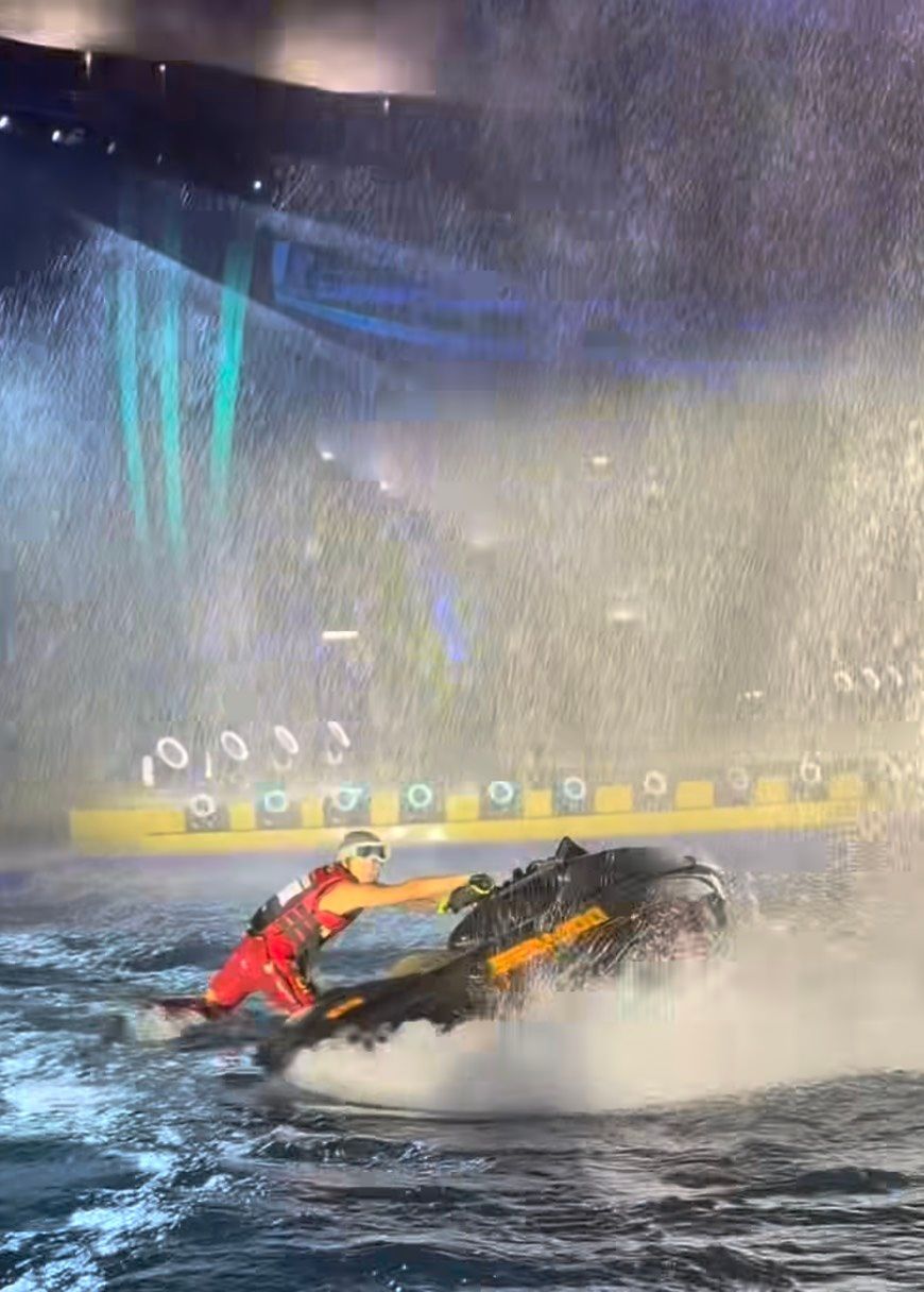 และโพสต์เพิ่มเติมว่า "วันที่ครอบครัวเราได้รับเกียรติให้เป็นส่วนหนึ่งในการร่วมสร้างประวัติศาสตร์ให้โลกได้เห็นถึงกีฬาเจ็ตสกีทำได้มากว่าที่คิด ครั้งแรกของโลกที่เจ็ตสกีได้มีโอกาสมาโชว์ในงานเปิดตัวระดับชาติ เราซุ่มซ้อมกันมาอย่างหนัก เพื่อ 4 นาทีในการโชว์