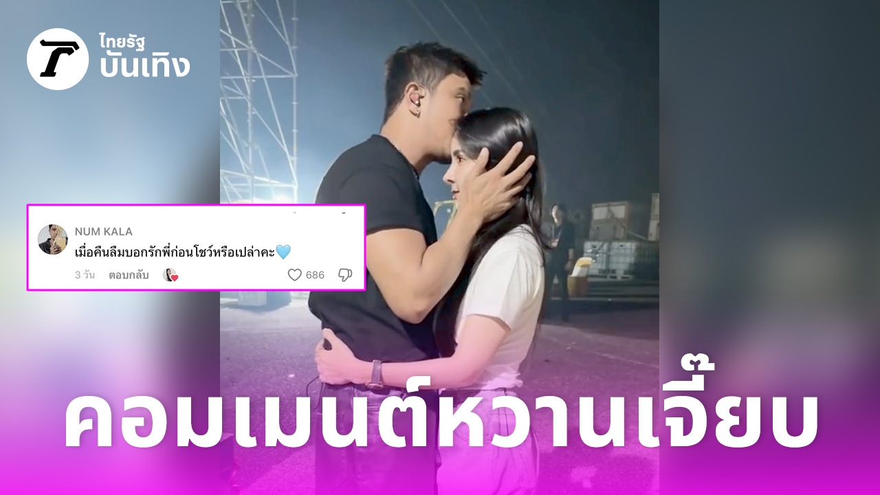 ซึ่งเป็นคลิปที่หนุ่มหอมหน้าผากจ๊ะโอ๋และสวมกอดกันเบาๆ ซึ่งจ๊ะโอ๋เองก็หอมไปที่คอของหนุ่มด้วยความรักเช่นกัน พร้อมกับเขียนแคปชันว่า "ส่งกำลังใจก่อนขึ้นโชว์" ซึ่งในคลิปว่าหวานฉ่ำแล้ว แต่งานนี้คอมเมนต์ของนักร้องหนุ่มหวานยิ่งกว่า