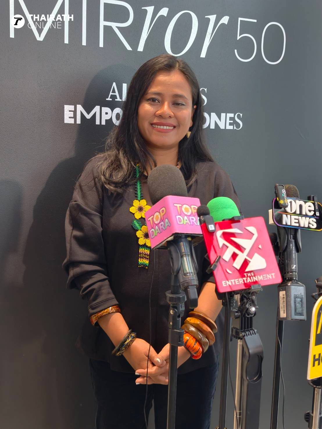 ล่าสุด แป้ง รัสมี ได้มาร่วมงาน “MIRROR50 : All Voices, Empowering Ones” ณ EM SKYE ชั้น 14, EMSPHERE (เอ็มสกาย ชั้น 14, เอ็มสเฟียร์) เจ้าตัวก็ให้สัมภาษณ์ถึงเรื่องนี้ บอกว่า