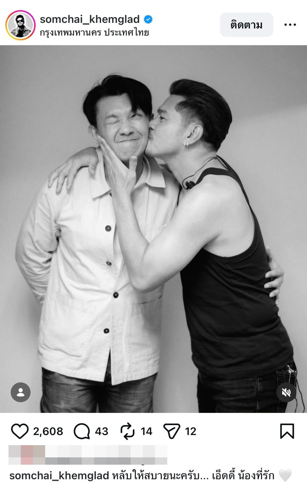 - เต๋า สมชาย โพสต์อินสตาแกรมภาพคู่พร้อมแคปชันว่า "หลับให้สบายนะครับ... เอ็ดดี้ น้องที่รัก"