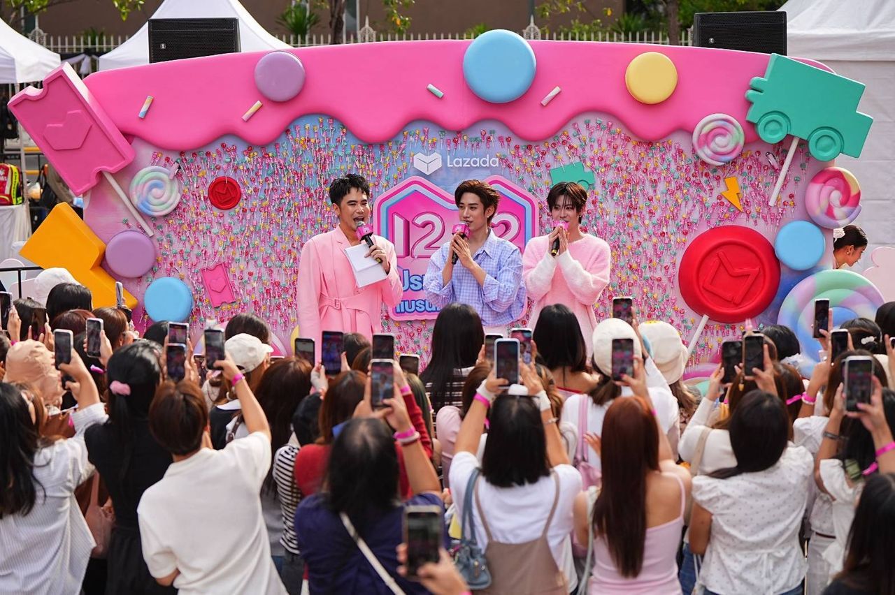 ภายในงาน ‘Lazada 12.12 โปรอมยิ้ม หวานเจี๊ยบ’ โดยมีเหล่าศิลปินรุ่นใหม่สุดฮอต ได้แก่ เติ้ล–มติมันท์, เฟิร์สวัน–วรรณกร, นุนิว–ชวรินทร์ และปัง–พิรุฬห์วัฒน์ มาร่วมสร้างความประทับใจพร้อมกิจกรรมสุดสนุก ให้บรรดาแฟนคลับได้ใกล้ชิดแบบเอ็กซ์คลูซีฟ