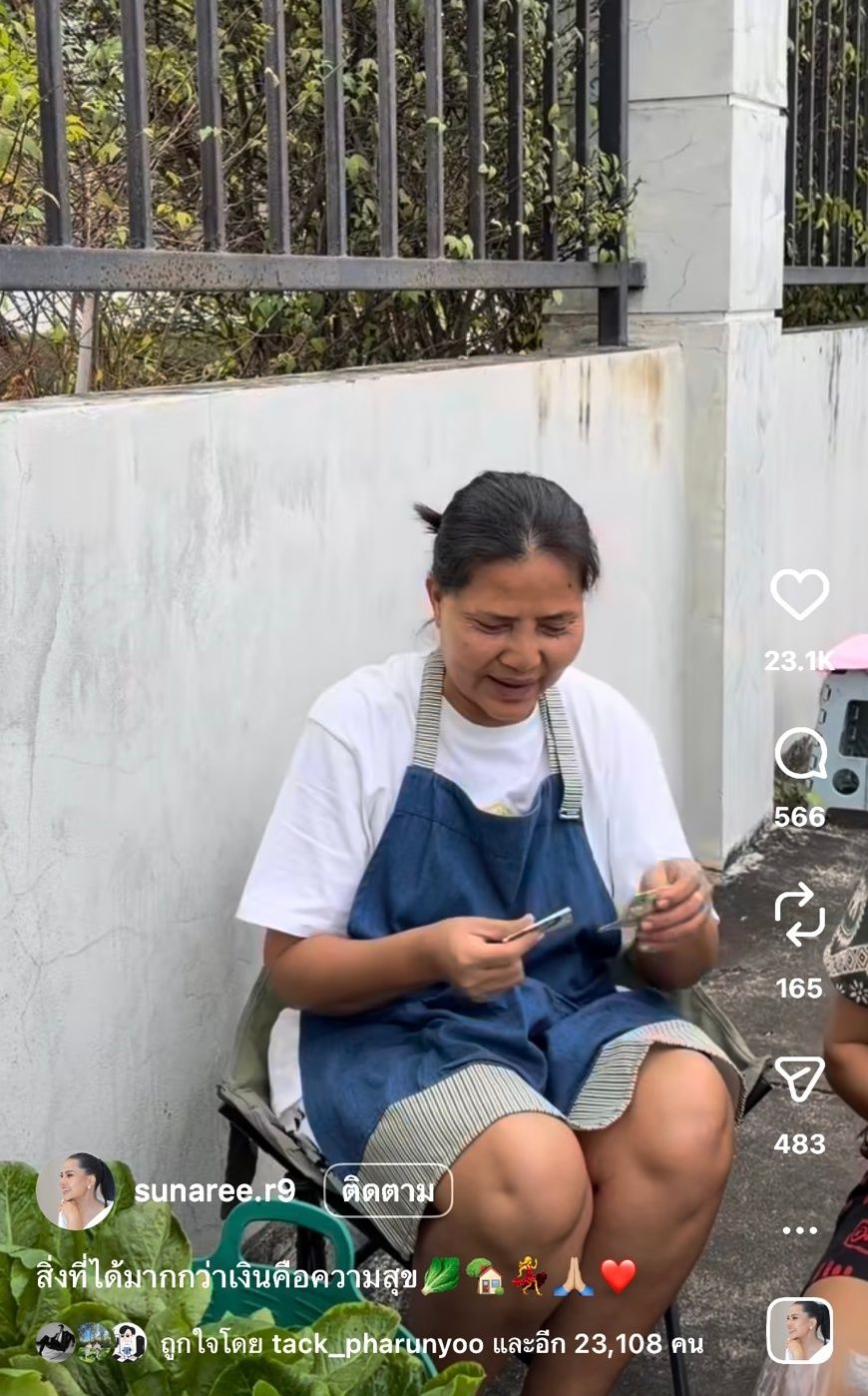 โดย พี่สุ ได้โพสต์คลิปดังกล่าวและเขียนแคปชั่นว่า “สิ่งที่ได้มากกว่าเงินคือความสุข” ด้านแฟนๆ ที่ติดตามได้เข้ามาคอมเมนต์กันจำนวนมาก พร้อมบอกชื่นชมในความขยัน และต่างก็บอกว่า อยากไปอุดหนุน เพราะผักแต่ละอย่างทั้งสดใหม่ และปลอดสารพิษอีกด้วย