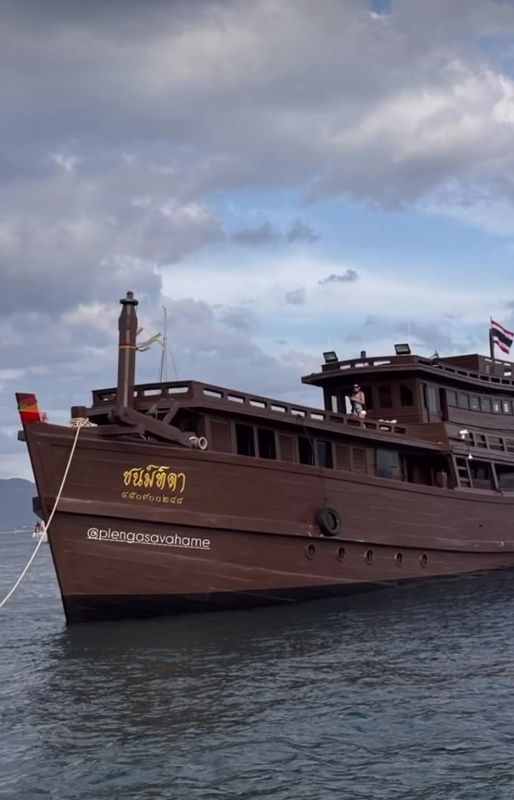 นอกจากภาพบรรยากาศสุดอบอุ่น รวมถึงเค้กวันเกิดก้อนใหญ่ที่ได้เห็นกันแล้ว หลายคนก็โฟกัสไปที่เรือลำใหญ่ที่ล่องชมวิวอยู่กลางทะเล ซึ่งมีชื่อเขียนไว้ที่ข้างเรือว่า “ชนม์ทิดา” ซึ่งคาดว่าน่าจะเป็นเรือของเจ้าตัวด้วย