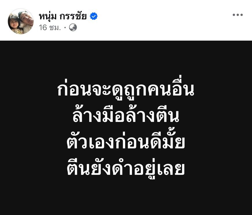 กลายเป็นประเด็นที่คนรวมตัวใส่ใจกันจำนวนมาก หลังจากที่ หนุ่ม กรรชัย พิธีกรชื่อดัง ได้ออกมาโพสต์ข้อความ “ก่อนจะดูถูกคนอื่น ล้างมือล้างตีXตัวเองก่อนดีมั้ย ตีXยังดำอยู่เลย” จนทำให้คนสงสัยว่าโพสต์นี้หมายถึงใคร และมีบางคนถึงกับร้อนตัวเลยทีเดียว